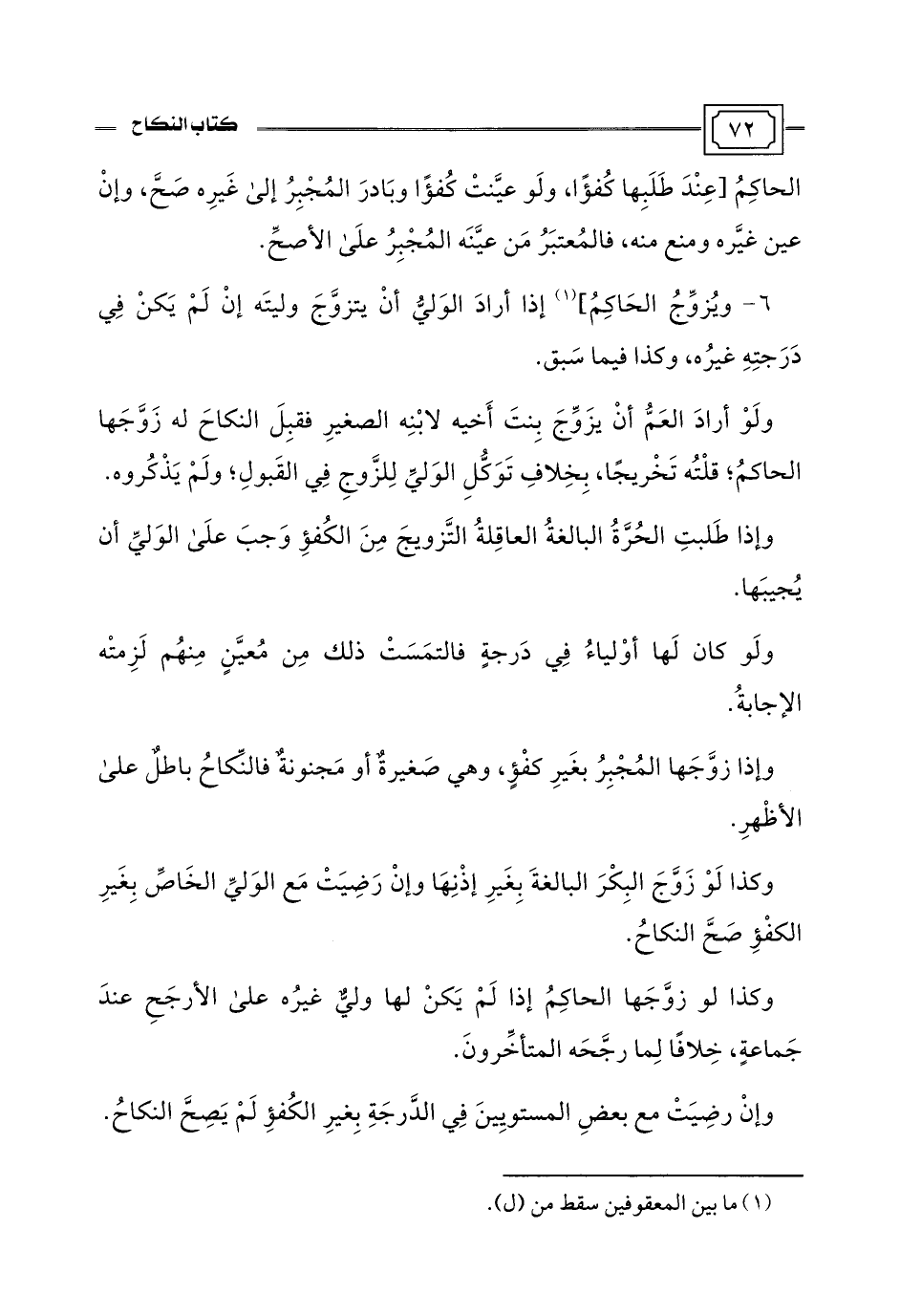 وإذا طَلبتِ الحُرَّةُ البالغةُ العاقِلةُ التَّزويجَ مِنَ الكُفؤِ وَجبَ علَى الوَليِّ أن يُجيبَها.