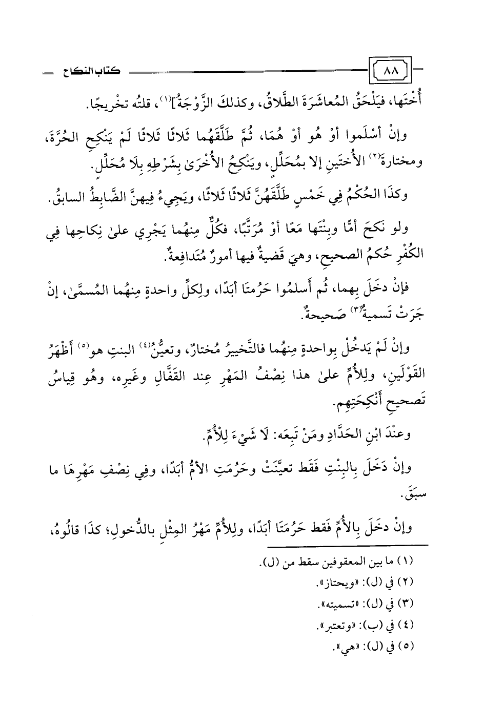 أُخْتَها، فيَلْحَقُ المُعاشَرَةَ الطَّلاقُ، وكذلكَ الزَّوْجَةُ] (¬1)، قلتُه تخْريجًا.