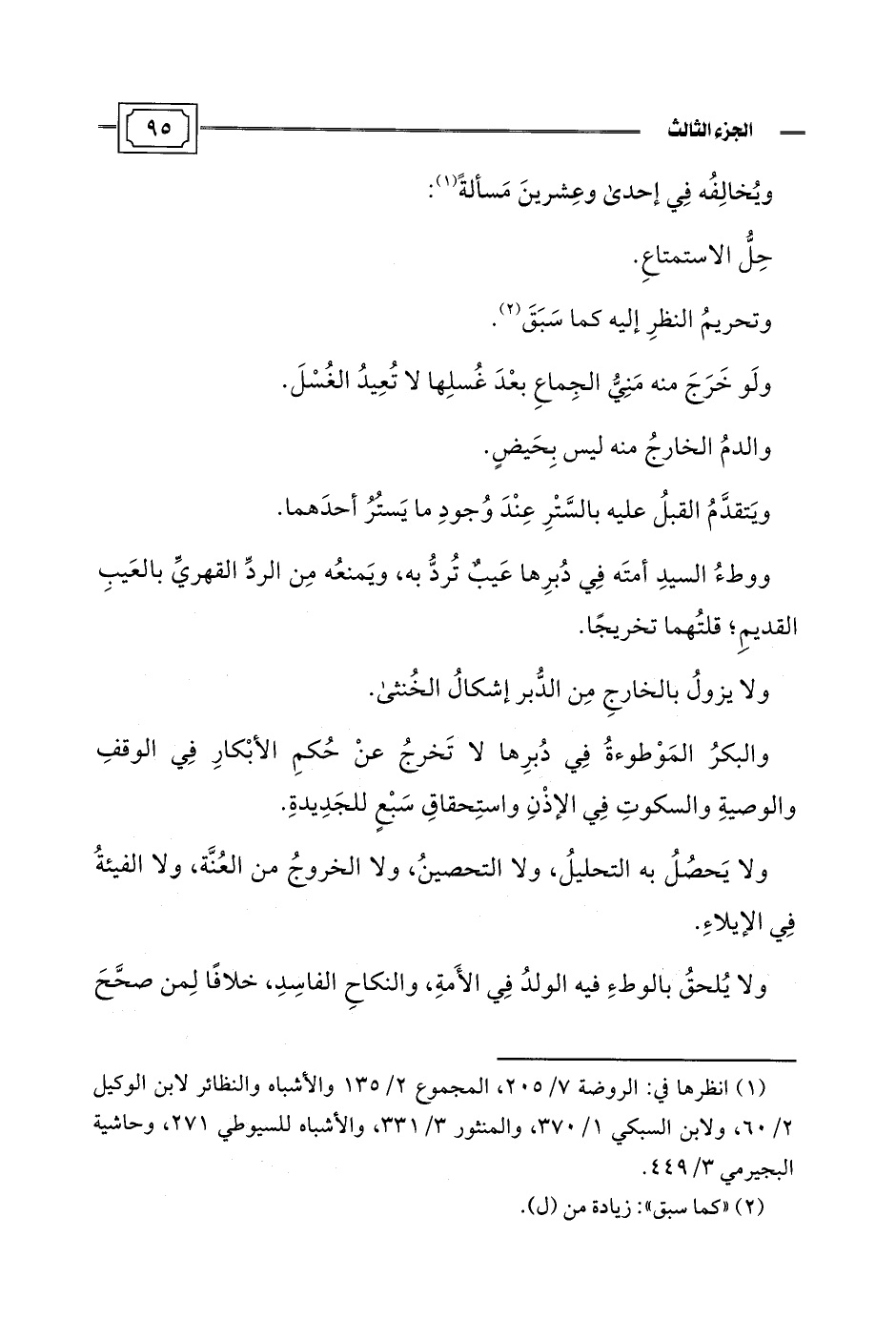 (¬1) انظرها في: الروضة 7/ 205، المجموع 2/ 135 والأشباه والنظائر لابن الوكيل 2/ 60، ولابن السبكي 1/ 370، والمنثور 3/ 331، والأشباه للسيوطي 271، وحاشية البجيرمي 3/ 449.