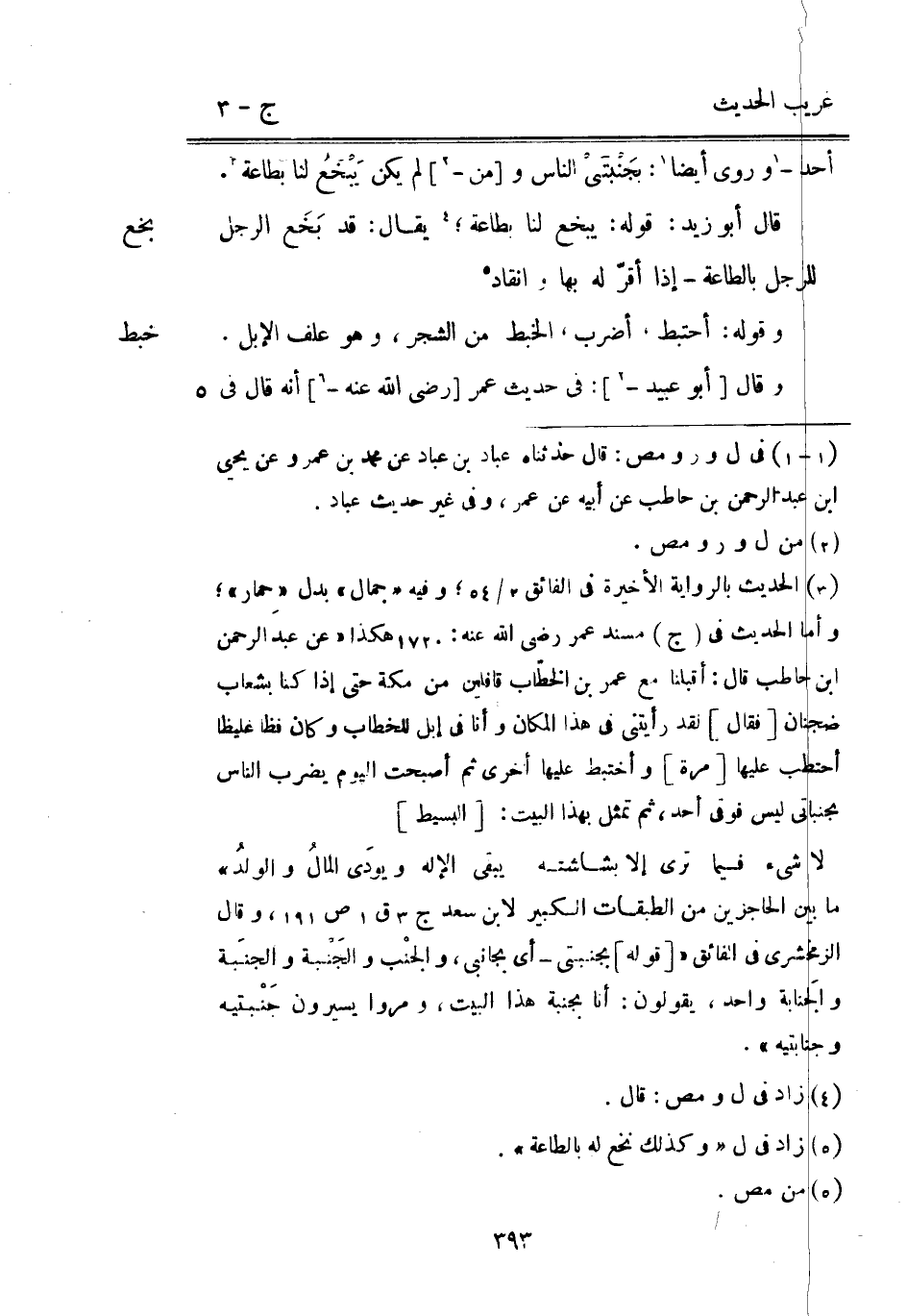أحد وَرُوِيَ أَيْضا: بجَنْبتَيْ النَّاس و [من -] لم يكن يَبْخَعُ لنا بِطَاعَة. قَالَ أَبُو زيد: قَوْله: يَبْخَعُ لنا بِطَاعَة يُقَال: قد بَخَع الرجل للرجل بِالطَّاعَةِ إِذا أقرّ لَهُ بهَا وانقاد. وَقَوله: أحتبط أضْرب الْخبط من الشّجر وَهُوَ علف الْإِبِل.