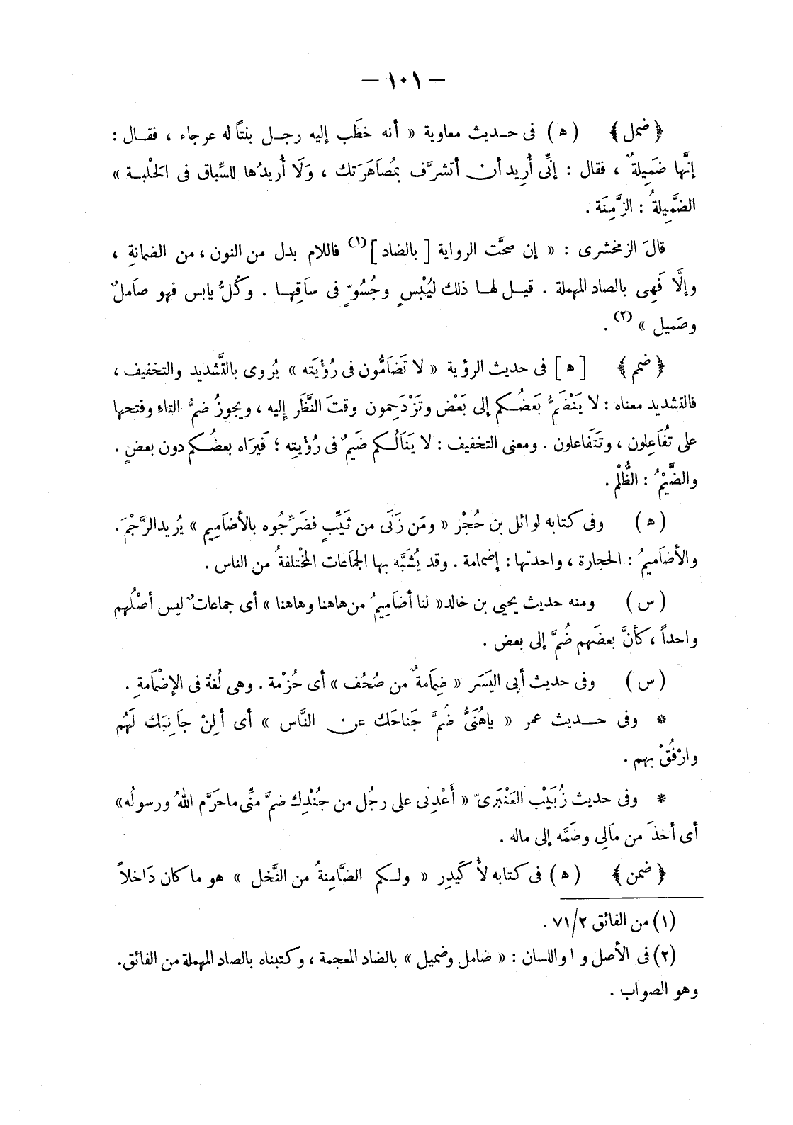 (2) في الأصل وا واللسان: «ضامل وضميل» بالضاد المعجمة، وكتبناه بالصاد المهملة من الفائق. وهو الصواب.