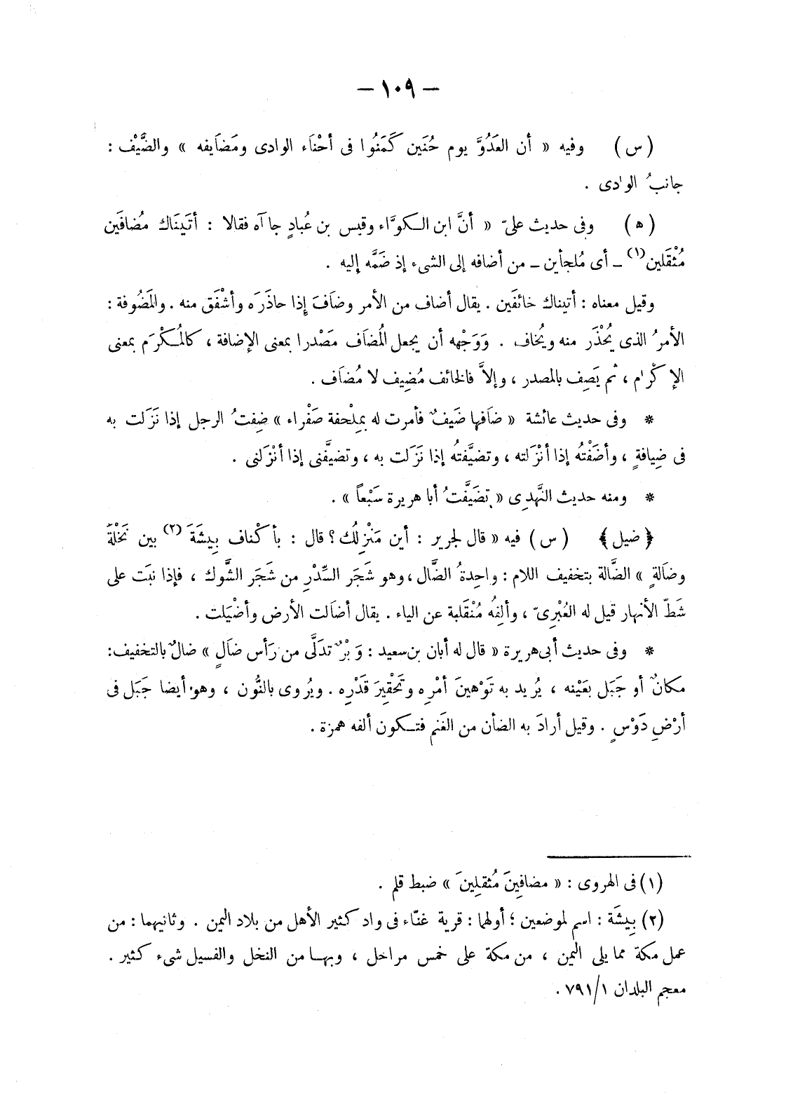 (1) في الهروي: «مضافِيَن مُثقلِينَ» ضبط قلم.
