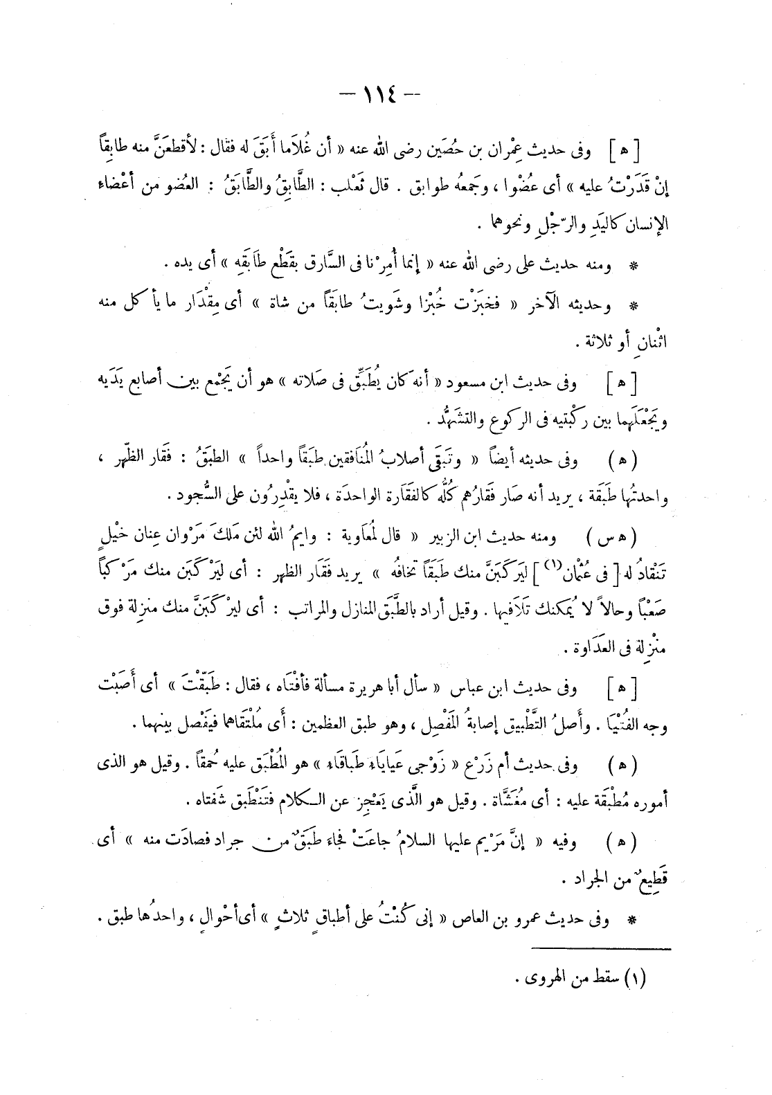 وَمِنْهُ حَدِيثُ عَلِيٍّ رَضِيَ اللَّهُ عَنْهُ «إِنَّمَا أُمِرْنْا فِي السَّارق بقَطْع طَابَقِهِ» أَيْ يَدِهِ.