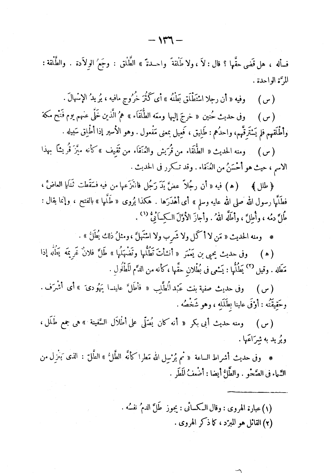 (1) عبارة الهروي: وقال الكسائي: يجوز طَلَّ الدمُ نفسُه.