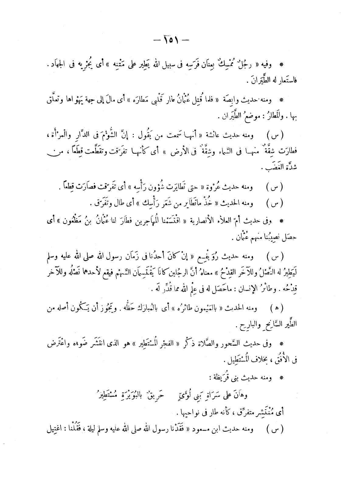 وَفِيهِ «رجُلٌ مُمْسِكٌ بعِنَانِ فَرَسِه فِي سَبيل اللَّه يَطِيرُ عَلَى مَتْنِه» أَيْ يُجْرِيه فِي الجهَاد.