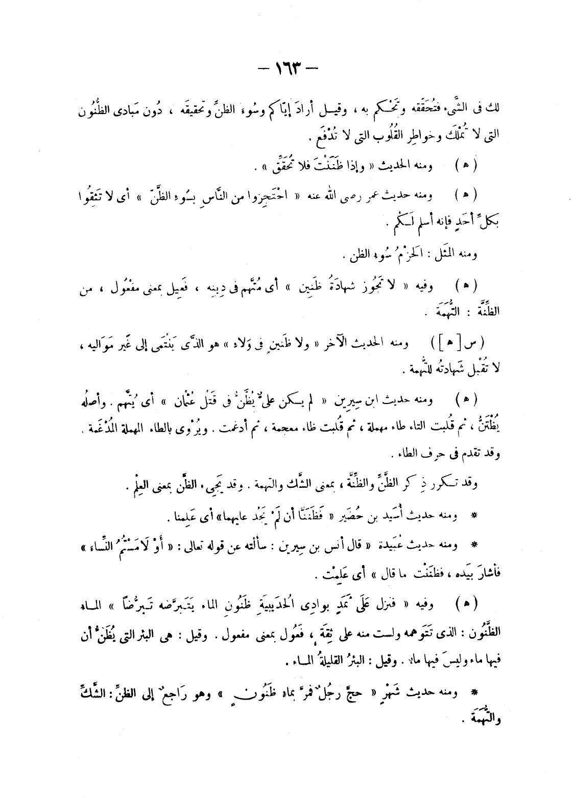 وَمِنْهُ حَدِيثُ شَهْرٍ «حجَّ رجُلٌ فمرَّ بماءٍ ظَنُون» وَهُوَ رَاجعٌ إِلَى الظَّنِّ: الشَّكِّ والتُّهْمَة.