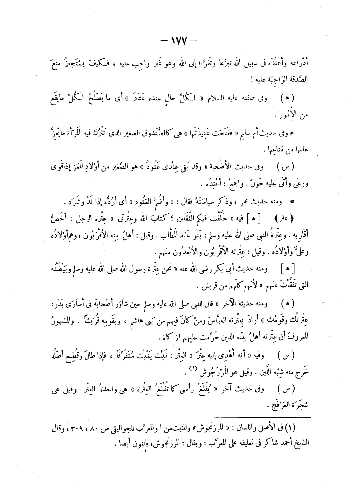 عِتْرَتُك وقَومُك» أرادَ بعِتْرَتِه العبَّاسَ ومنْ كانَ فِيهِمْ مِنْ بَني هَاشِمٍ، وبقَومِه قُرَيشاً. والمشهورُ المعروفُ أَنَّ عِتْرَتَهُ أهلُ بيْته الَّذِينَ حُرِّمت عَلَيْهِمُ الزَّكَاةُ.