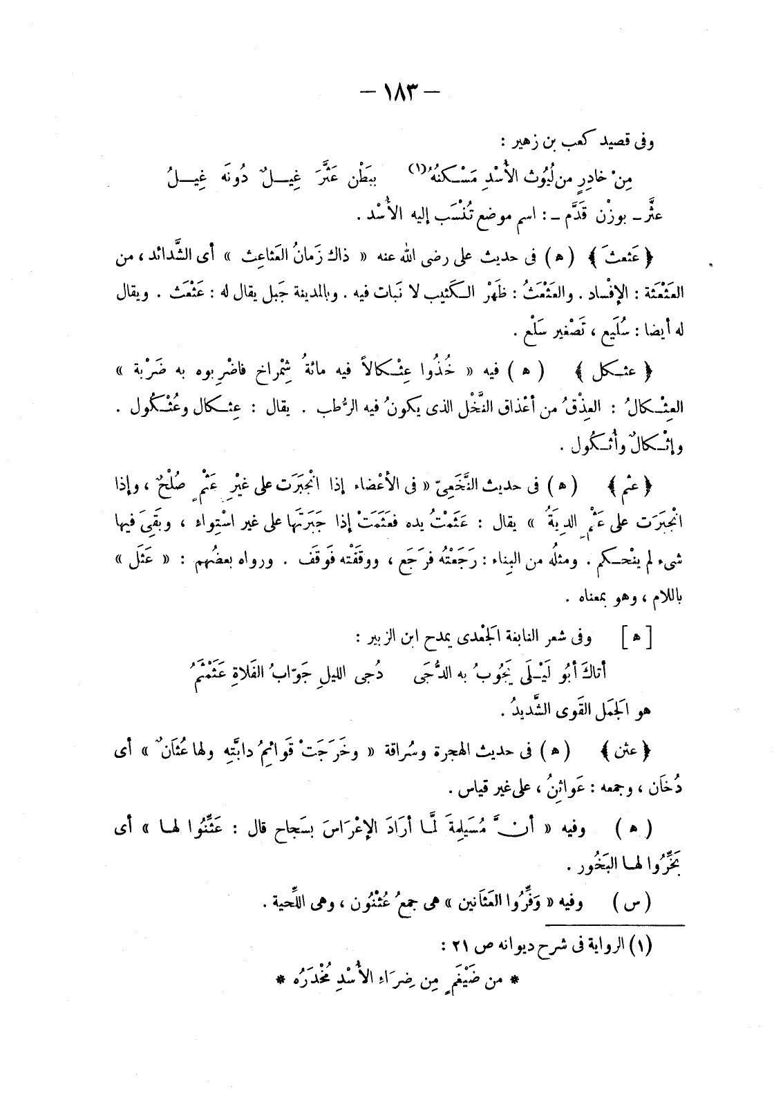 مِنْ خادِرٍ مِنْ لُيُوث الأُسْدِ مَسْكنُهُ ... «1» بِبَطْنِ عَثَّرَ غِيلٌ دُونَه غِيلُ