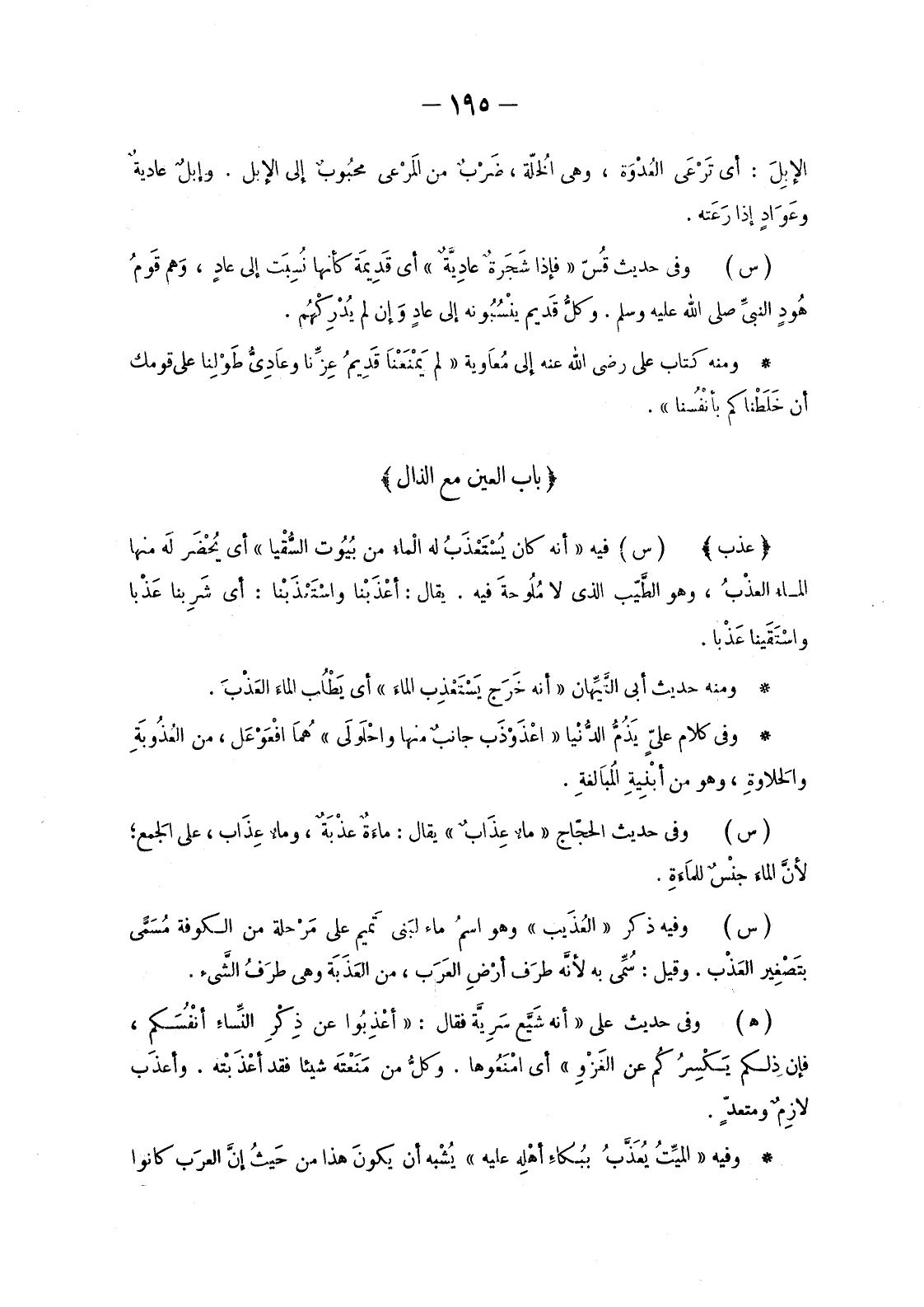 (هـ) وَفِي حَدِيثِ عَلِيٍّ «أَنَّهُ شَيَّع سَرِيَّة فَقَالَ: «أَعْذِبُوا عَنْ ذِكْرِ النِّساءِ أنْفُسِكم، فَإِنَّ ذَلِكُمْ يَكْسِرُكُم عَنِ الغَزْوِ» أَيِ امْنَعُوها. وكلُّ مَنْ مَنَعْتَه شَيْئًا فَقَدْ أَعْذَبْتَه. وأَعْذَبَ لازِمٌ ومتعدٍّ.