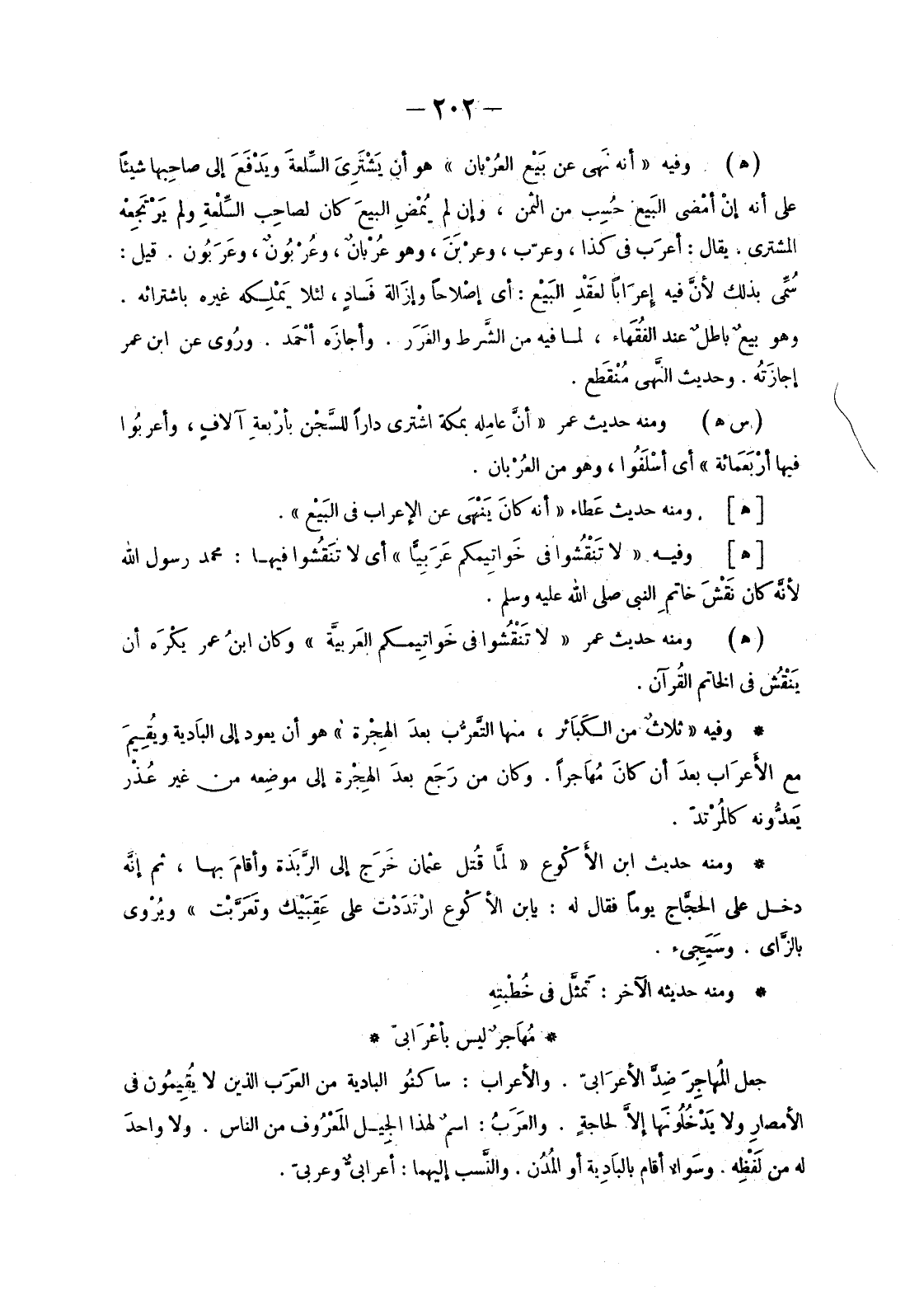 [هـ] وَمِنْهُ حَدِيثُ عَطاء «أَنَّهُ كانَ يَنْهَى عَنِ الإِعْرَاب فِي البَيْع» .