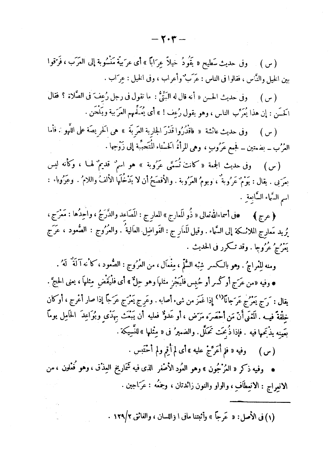 (1) في الأصل: «عَرجاً» وأثبتنا ما في اواللسان، والفائق 2/ 129.