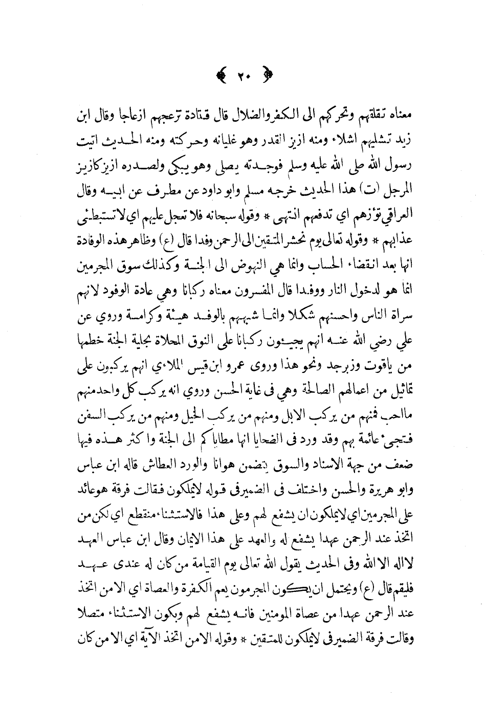 معناه تقلقهم وتحركهم إلى الكفر والضلال قال قتادة تزعجهم إزعاجا وقال ابن زيد تشليهم أشلاء ومنه أزيز القدر وهو غليانه وحركته ومنه الحديث أتيت رسول الله صلى الله عليه و سلم فوجدته يصلي وهو يبكي ولصدره أزيز كأزيز المرجل ت هذا الحديث خرجه مسلم وأبو داود عن مطرف عن أبيه وقال العراقي تؤزهم أي تدفعهم انتهى وقوله سبحانه فلا تعجل عليهم أي لا تستبطئ عذابهم وقوله تعالى يوم نحشر المتقين إلى الرحمن وفدا قال ع وظاهر هذه الوفادة أنها بعد انقضاء الحساب وإنما هي النهوض إلى الجنة وكذلك سوق المجرمين أنما هو لدخول النار ووفدا قال المفسرون معناه ركبانا وهي عادة الوفود لأنهم سراة الناس وأحسنهم شكلا وإنما شبههم بالوفد هيئة وكرامة وروي عن علي رضي الله عنه أنهم يجيئون ركبانا على النوق المحلاة بحلية الجنة خطمها من ياقوت وزبرجد ونحو هذا وروي عمرو ابن قيس الملاءي أنهم يركبون على تماثيل من أعمالهم الصالحة وهي في غاية الحسن وروي أنه يركب كل واحد منهم ما أحب فمنهم من يركب الإبل ومنهم من يركب الخيل ومنهم من يركب السفن فتجئ عائمة بهم وقد ورد في الضحايا أنها مطاياكم إلى الجنة وأكثر هذه فيها ضعف من جهة الإسناد والسوق يتضمن هوانا والورد العطاش قاله ابن عباس وأبو هريرة والحسن واختلف في الضمير في قوله لا يملكون فقالت فرقة هو عائد على المجرمين أي لا يملكون أن يشفع لهم وعلى هذا فالاستثناء منقطع أي لكن من اتخذ عند الرحمن عهدا يشفع له والعهد على هذا الإيمان وقال ابن عباس العهد لا إله إلا الله وفي الحديث يقول الله تعالى يوم القيامة