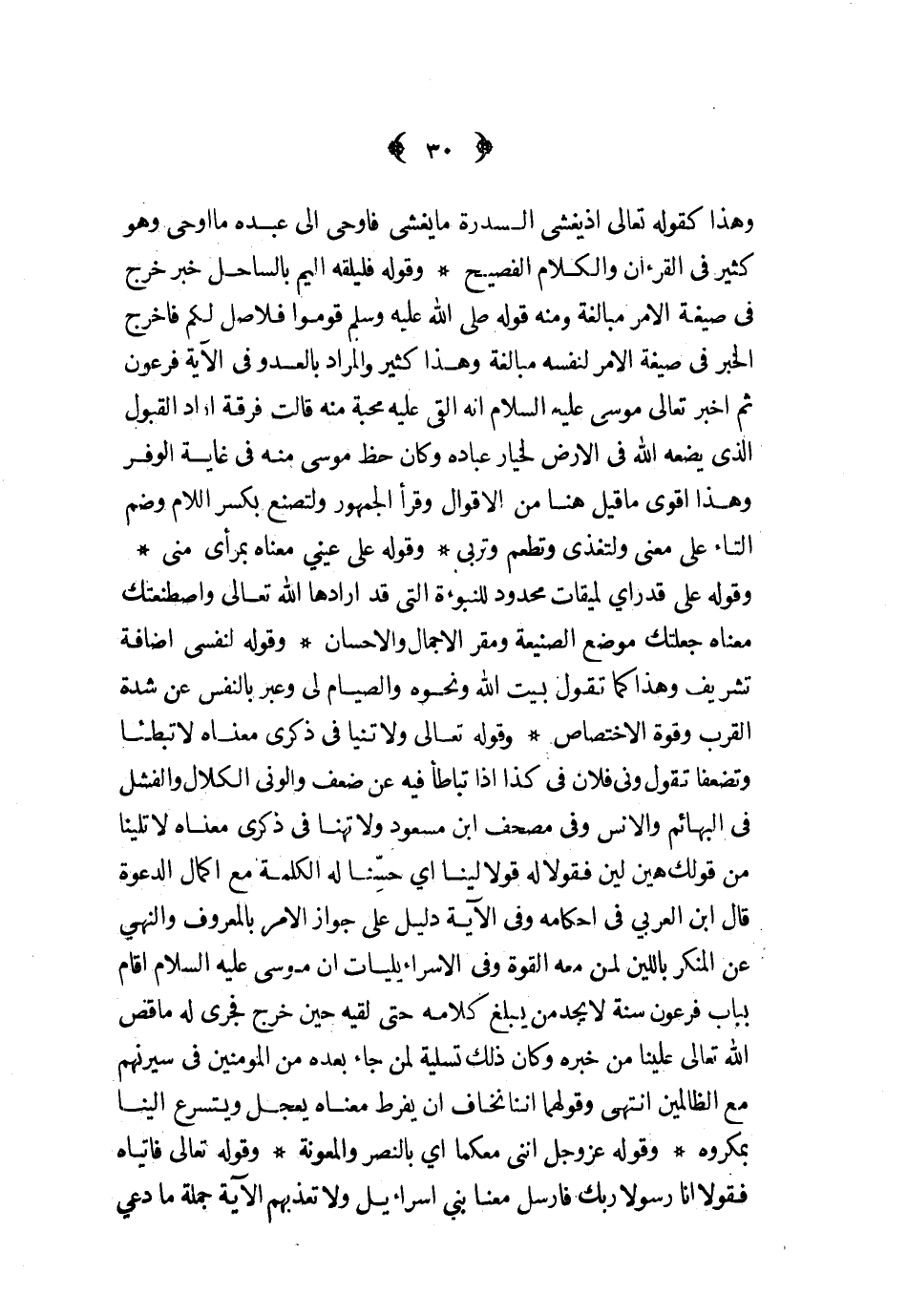 وقوله لنفسي إضافة تشريف وهذا كما تقول بيت الله ونحوه والصيام لي وعبر بالنفس عن شدة القرب وقوة الاختصاص وقوله تعالى ولا تنيا في ذكري معناه لا تبطئا وتضعفا تقول وني فلان في كذا إذا تباطأ فيه عن ضعف والونى الكلال والفشل في البهائم والأنس وفي مصحف ابن مسعود ولا تهنا في ذكري معناه لا تلينا من قولك هين لين فقولا له قولا لينا أي حسنا له الكلمة مع إكمال الدعوة قال ابن العربي في أحكامه وفي الآية دليل على جواز الأمر بالمعروف والنهي عن المنكر باللين لمن معه القوة وفي الإسرائيليات أن موسى عليه السلام أقام بباب فرعون سنة لا يجد من يبلغ كلامه حتى لقيه حين خرج فجرى له ما قص الله تعالى علينا من خبره وكان ذلك تسلية لمن جاء بعده من المؤمنين في سيرنهم مع الظالمين انتهى وقولهما أننا نخاف أن يفرط معناه يعجل ويتسرع إلينا بمكروه وقوله عز و جل إنني معكما أي بالنصر والمعونة وقوله تعالى فأتياه فقولا إنا رسولا ربك فأرسل معنا بني إسرائيل ولا تعذبهم الآية جملة ما دعي