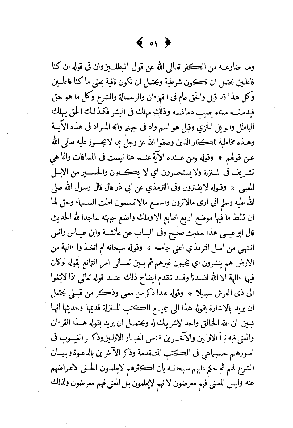 وما ضارعه من الكفر تعالى الله عن قول المبطلين وان فى قوله ان كنا فاعلين يحتمل ان تكون شرطية ويحتمل ان تكون نافية بمعنى ما كنا فاعلين وكل هذا قد قيل والحق عام فى القرءان والرسالة والشرع وكل ما هو حق فيدمغه معناه يصيب دماغه وذلك مهلك فى البشر فكذلك الحق يهلك الباطل والويل الخزى وقيل هو اسم واد فى جهنم وانه المراد فى هذه الآية وهذه مخاطبة للكفار الذين وصفوا الله عز و جل بما لا يجوز عليه تعالى الله عن قولهم وقوله ومن عنده الآية عند هنا ليست فى المسافات وانما هى تشريف فى المنزلة ولا يستحسرون اي لا يكلون والحسير من الابل المعيى وقوله لا يفترون وفى الترمذى عن ابي ذر قال قال رسول الله صلى الله عليه و سلم انى ارى ما لا ترون واسمع ما لا تسمعون اطت السماء وحق لها ان تئط ما فيها موضع اربع اصابع الا وملك واضع جبهته ساجدا لله الحديث قال ابو عيسى هذا حديث صحيح وفى الباب عن عائشة وابن عباس وانس انتهى من اصل الترمذي اعنى جامعة وقوله سبحانه ام اتخذوا ءالهة من الارض هم ينشرون اي يحيون غيرهم ثم بين تعالى امر التمانع بقوله لو كان فيهما ءالهة الا الله لفسدتا وقد تقدم ايضاح ذلك عند قوله تعالى اذا لابتغوا الى ذي العرش سبيلا وقوله هذا ذكر من معى وذكر من قبلى يحتمل ان يريد بالاشارة بقوله هذا الى جميع الكتب المنزلة قديمها وحديثها انها بين ان الله الخالق واحد لا شريك له يحتمل ان يريد بقوله هذا القرءان والمعنى فيه نبأ الاولين والآخرين فنص اخبار الاولين وذكر الغيوب فى امورهم حسبما هى فى الكتب المتقدمة وذكر الآخرين بالدعوة وبيان الشرع لهم ثم حكم عليهم سبحانه بان اكثرهم لا يعلمون الحق لاعراضهم عنه وليس المعنى فهم معرضون لانهم لا يعلمون بل المعنى فهم معرضون ولذلك