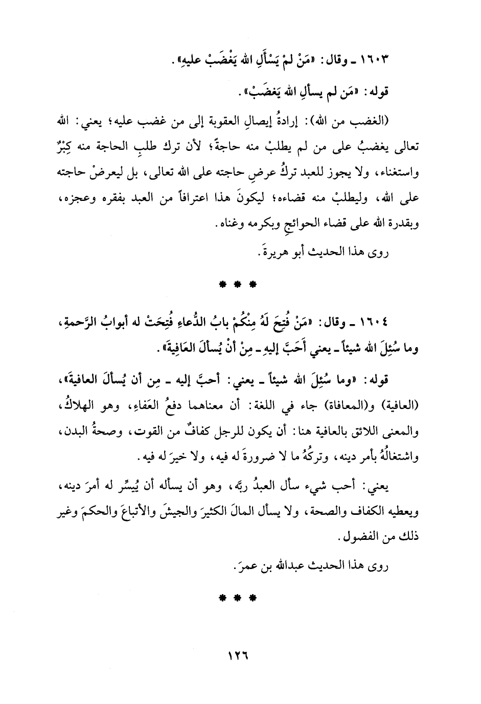 1603 - وقال: "مَنْ لمْ يَسْأَلِ الله يَغْضَبْ عليهِ".