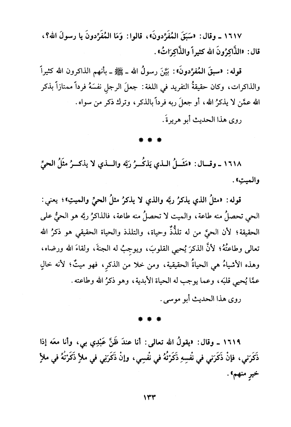 1618 - وقال: "مَثَلُ الذي يَذكُرُ رَبَّه والذي لا يذكرُ مثَلُ الحيِّ والميتِ".