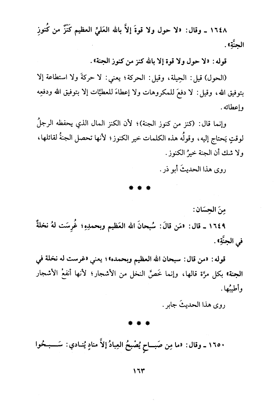 1648 - وقال: "لا حول ولا قوةَ إلاَّ بالله العَليِّ العظيم كَنْزٌ من كُنوزِ الجنَّةِ".