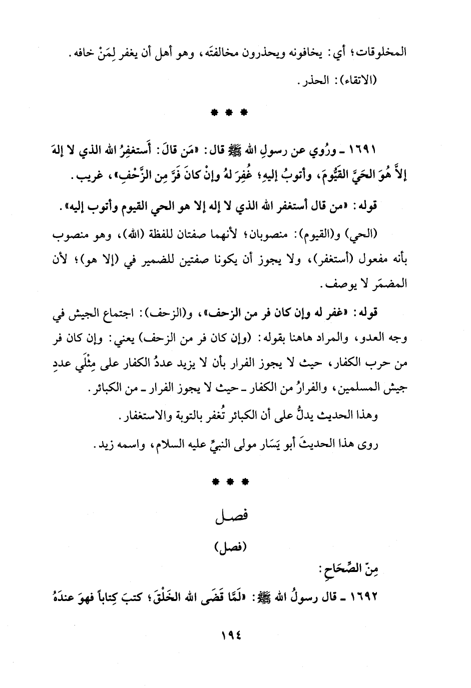1691 - ورُوي عن رسولِ الله - صلى الله عليه وسلم - قال: "مَن قالَ: أَستغفِرُ الله الذي لا إلهَ إلَّا هُوَ الحَيَّ القَيُّومَ، وأتوبُ إليهِ؛ غُفِرَ لهُ وإنْ كانَ فَرَّ مِن الزَّحْفِ"، غريب.