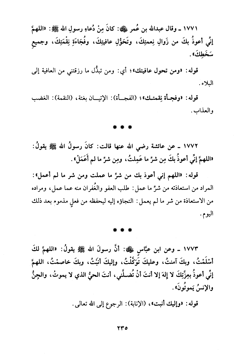 1771 - وقال عبد الله بن عُمر - رضي الله عنهما -: كانَ مِنْ دُعاءِ رسولِ الله - صلى الله عليه وسلم -: "اللهمَّ إنَّي أعوذُ بكَ من زَوالِ نِعمتِكَ، وتَحَوُّلِ عافيتِكَ، وفُجاءَةِ نِقْمَتِكَ، وجميعِ سَخَطِكَ".