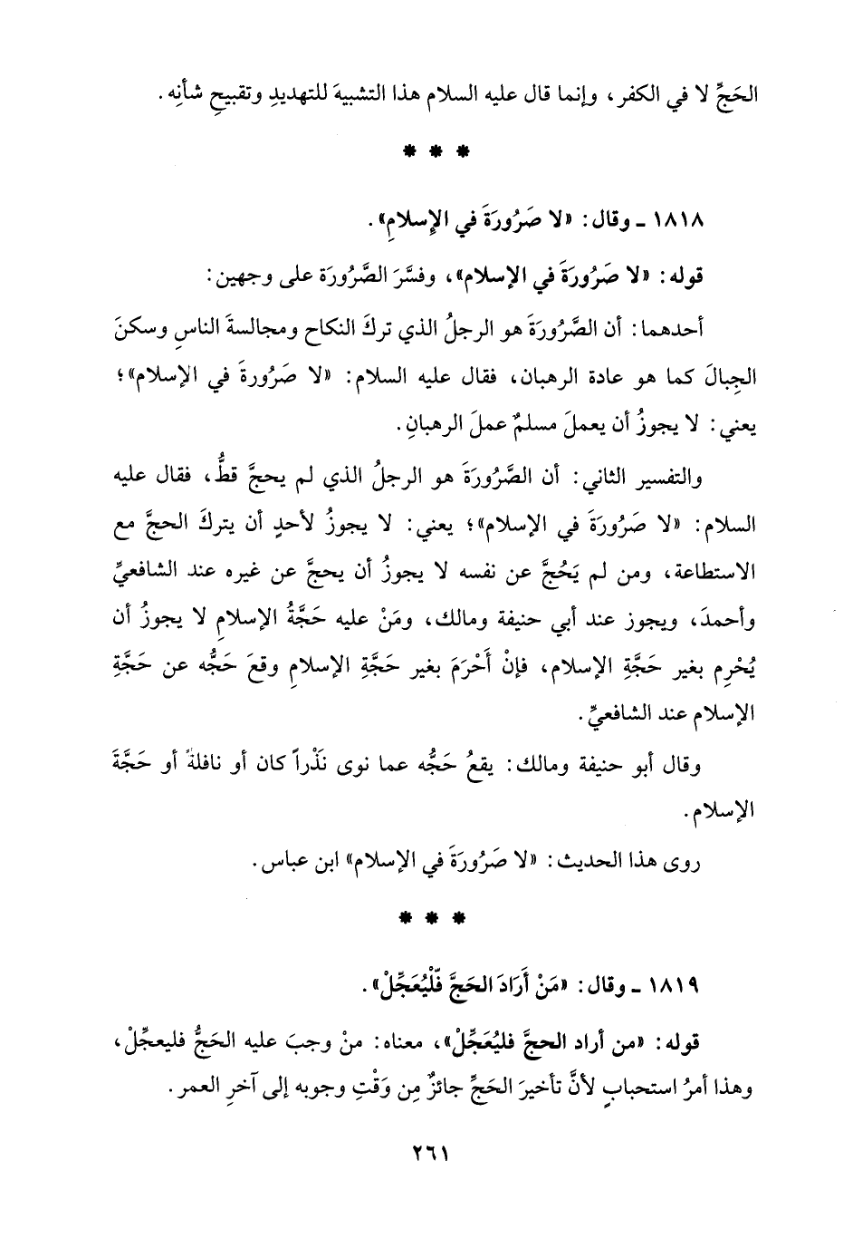 1818 - وقال: "لا صَرُورَةَ في الإِسلامِ".
