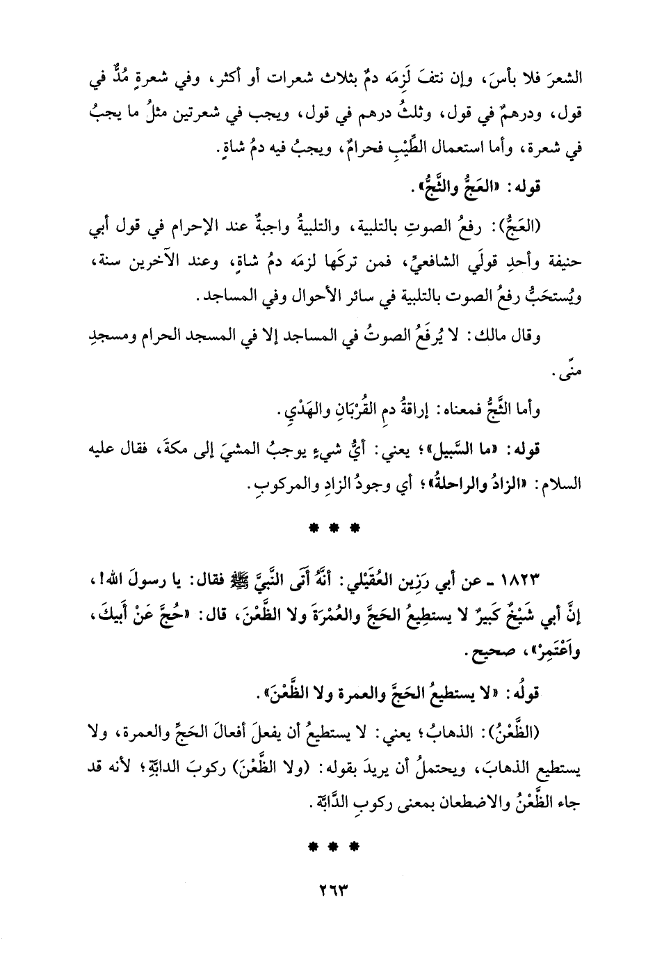 1823 - عن أبي رَزِين العُقَيْلي: أنَّهُ أَتَى النَّبيَّ - صلى الله عليه وسلم - فقال: يا رسولَ الله!، إنَّ أبي شَيْخٌ كَبيرٌ لا يستطِيعُ الحَجَّ والعُمْرَةَ ولا الظَّعْنَ، قال: "حُجَّ عَنْ أَبيكَ، واعْتَمِرْ"، صحيح.