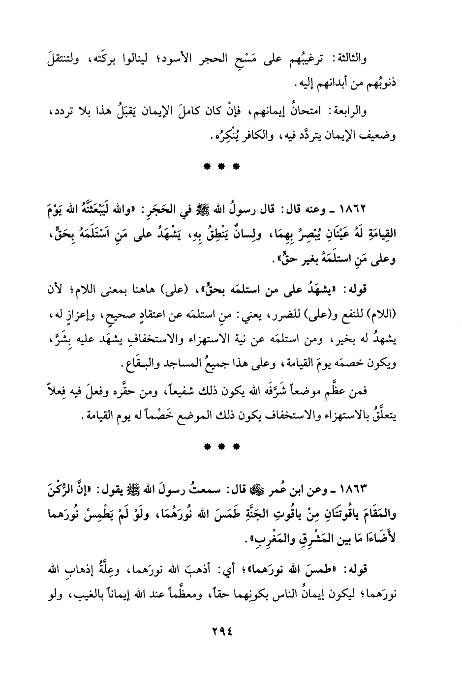 1862 - وعنه قال: قال رسولُ الله - صلى الله عليه وسلم - في الحَجَرِ: "والله لَيَبْعَثَنَّهُ الله يَوْمَ القِيامَةِ لَهُ عَيْنَانِ يُبْصِرُ بِهِمَا، ولِسانٌ يَنْطِقُ بِهِ، يَشْهَدُ على مَنِ اَسْتَلَمَهُ بِحَقٍّ، وعلى مَنِ استلَمَهُ بغير حقٍّ".