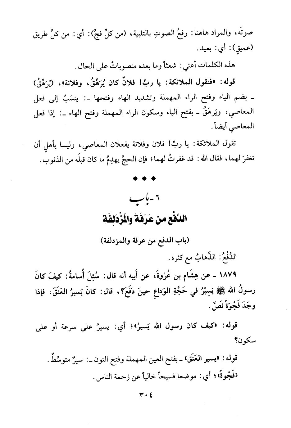 6 - باب الدَّفْع من عَرَفَةَ والمُزْدَلِفَة