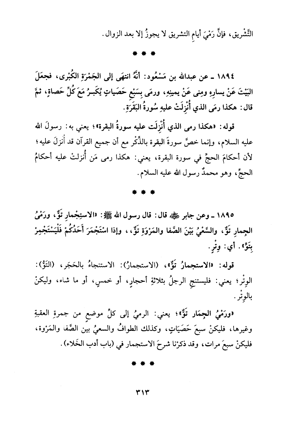 1895 - وعن جابر - رضي الله عنه - قال: قال رسول الله - صلى الله عليه وسلم -: "الاستِجْمارِ تَوٌّ، ورَمْيُ الجِمارِ تَوٌّ، والسَّعْيُ بَيْنَ الصَّفا والمَرْوَةِ تَوٌّ،، ووإذا اسْتَجْمَرَ أَحَدُكُمْ فَلْيَسْتَجْمِرْ بِتَوٍّ". أي: وِتْرٍ.