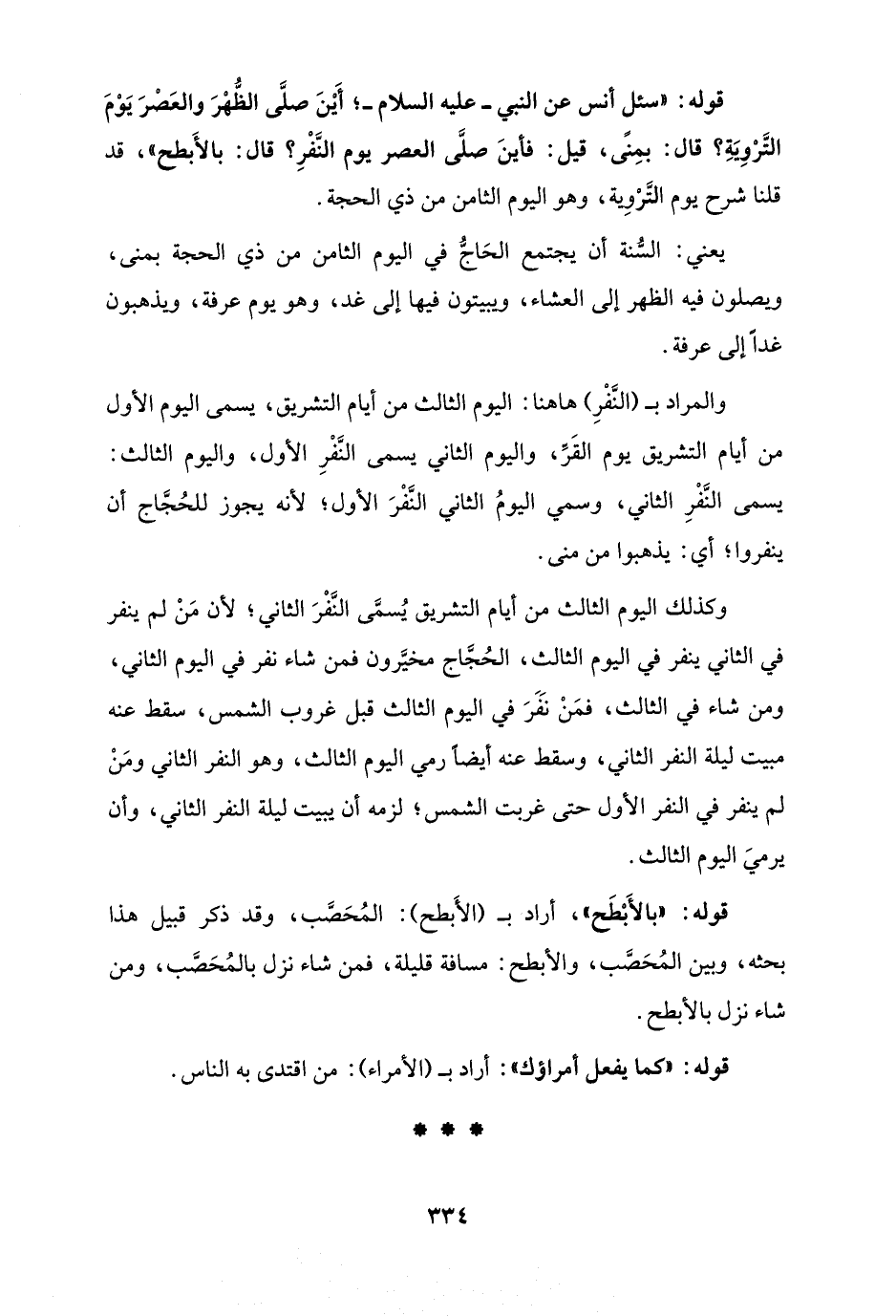 قوله: "سئل أنس عن النبي - عليه السلام -؛ أَيْنَ صلَّى الظُّهْرَ والعَصْرَ يَوْمَ التَّرْوِيَةِ؟ قال: بمِنًى، قيل: فأينَ صلَّى العصر يوم النَّفْرِ؟ قال: بالأَبطح"، قد قلنا شرح يوم التَّرْوِية، وهو اليوم الثامن من ذي الحجة.