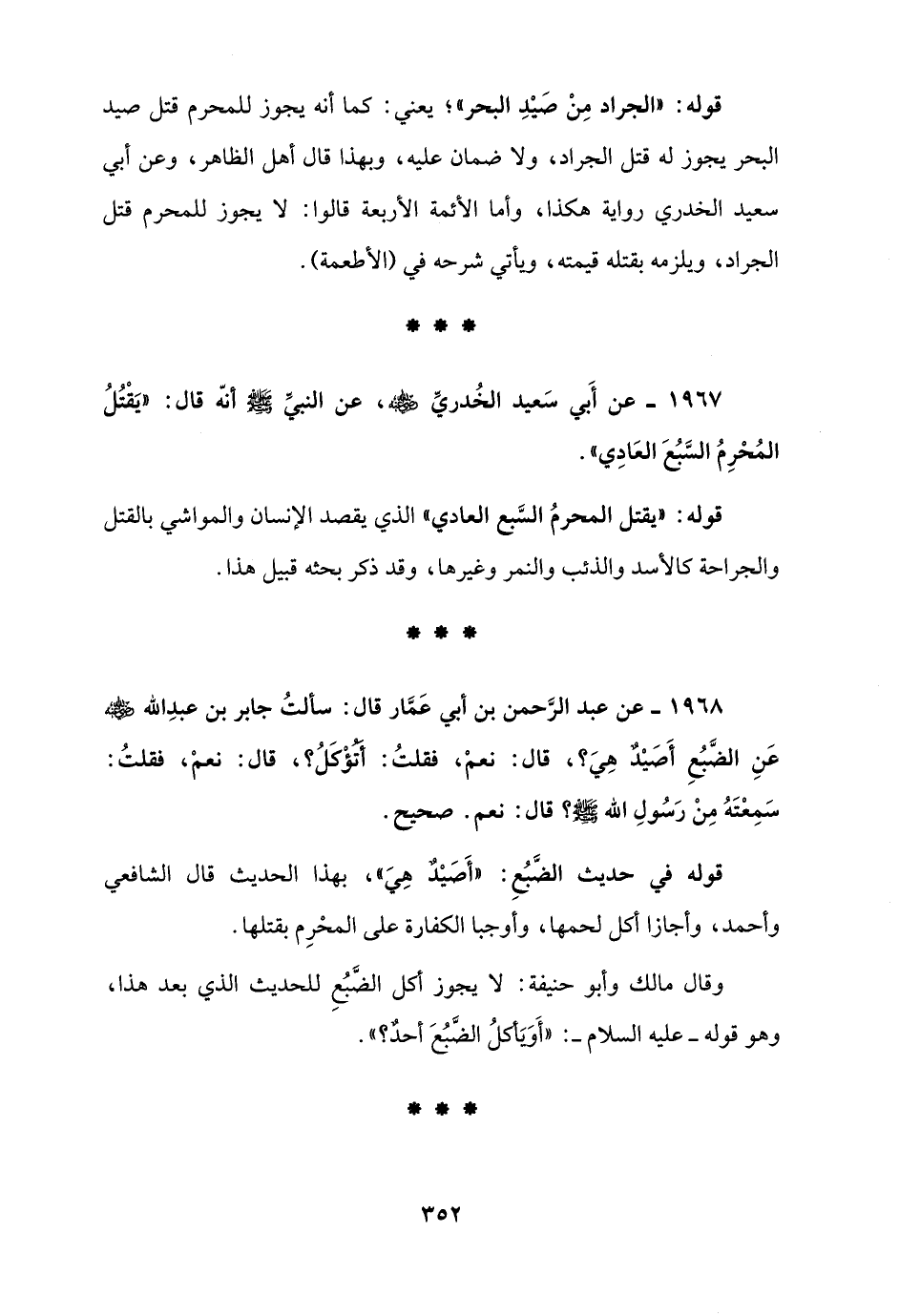 1968 - عن عبد الرَّحمن بن أبي عَمَّار قال: سألتُ جابر بن عبدِ الله - رضي الله عنه - عَنِ الضَّبُعِ أَصَيْدٌ هِيَ؟، قال: نعمْ، فقلتُ: أَتُؤْكَلُ؟، قال: نعمْ، فقلتُ: سَمِعْتَهُ مِنْ رَسُولِ الله - صلى الله عليه وسلم -؟ قال: نعم. صحيح.