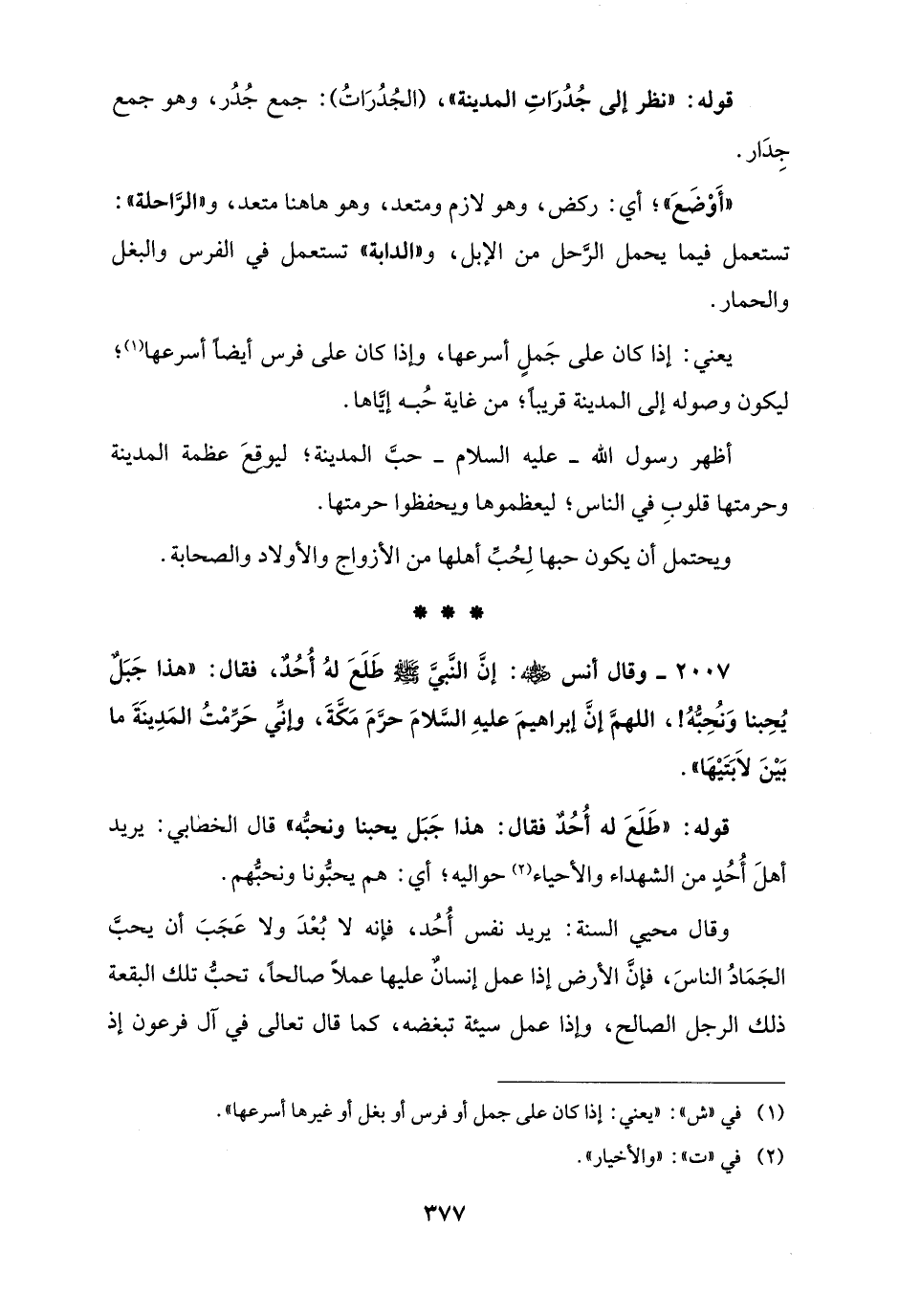 2007 - وقال أنس - رضي الله عنه -: إنَّ النَّبيَّ - صلى الله عليه وسلم - طَلَعَ لهُ أُحُدٌ، فقال: "هذا جَبَلٌ يُحِبنا وَنُحِبُّهُ!، اللهمَّ إنَّ إبراهيمَ عليهِ السَّلامَ حرَّمَ مَكَّةَ، وإنَّي حَرَّمْتُ المَدِينَةَ ما بَيْنَ لاَبَتَيْهَا".