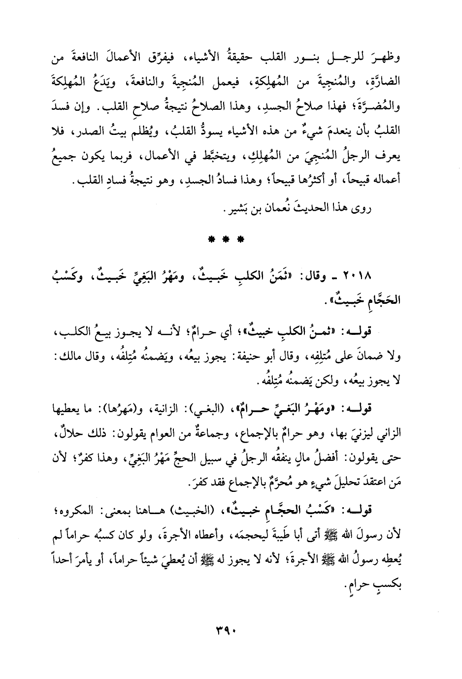 2018 - وقال: "ثَمَنُ الكلبِ خَبيثٌ، ومَهْرُ البَغِيِّ خَبيثٌ، وكَسْبُ الحَجَّامِ خَبيثٌ".
