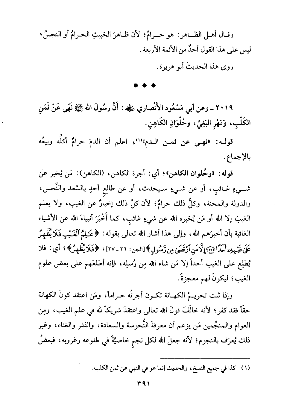 2019 - وعن أبي مَسْعُود الأَنْصاري - رضي الله عنه -: أَنَّ رسُولَ الله - صلي الله عليه وسلم - نَهَى عَنْ ثَمَنِ الكَلْبِ، وَمَهْرِ البَغِيِّ، وحُلْوَانِ الكَاهِنِ.