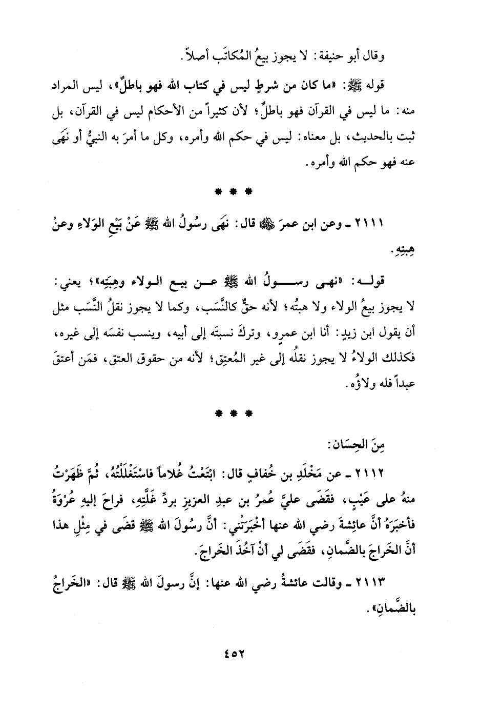 2111 - وعن ابن عمرَ - رضي الله عنهما - قال: نَهَى رسُولُ الله - صلى الله عليه وسلم - عَنْ بَيْعِ الوَلاءِ وعنْ هِبتِهِ.