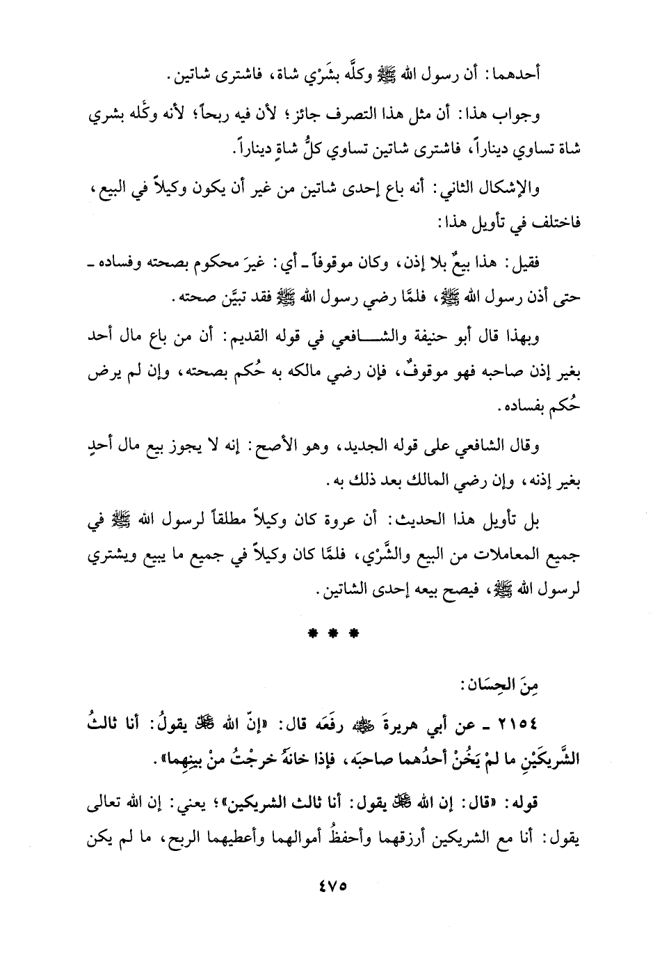 2154 - عن أبي هريرةَ - رضي الله عنه - رفَعَه قال: "إنّ الله - عز وجل - يقولُ: أنا ثالثُ الشَّريكَيْنِ ما لمْ يَخُنْ أحدُهما صاحبَه، فإذا خانَهُ خرجْتُ منْ بينِهِما".