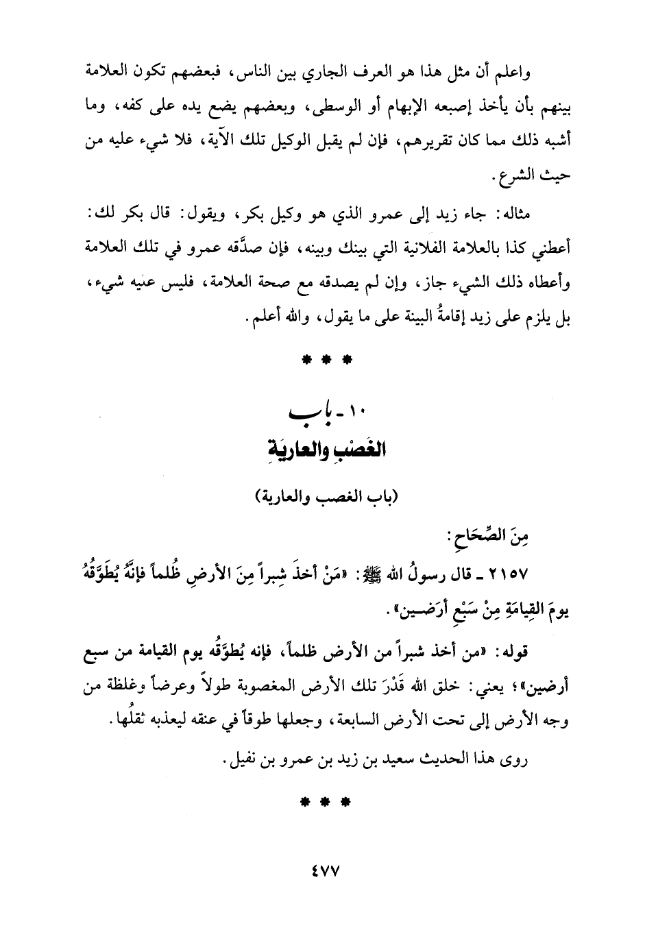 2157 - قال رسولُ الله - صلى الله عليه وسلم -: "مَنْ أخذَ شِبرًا مِنَ الأرضِ ظُلمًا فإنَّهُ يُطَوَّقُهُ يومَ القِيامَةِ مِنْ سَبع أرَضين".