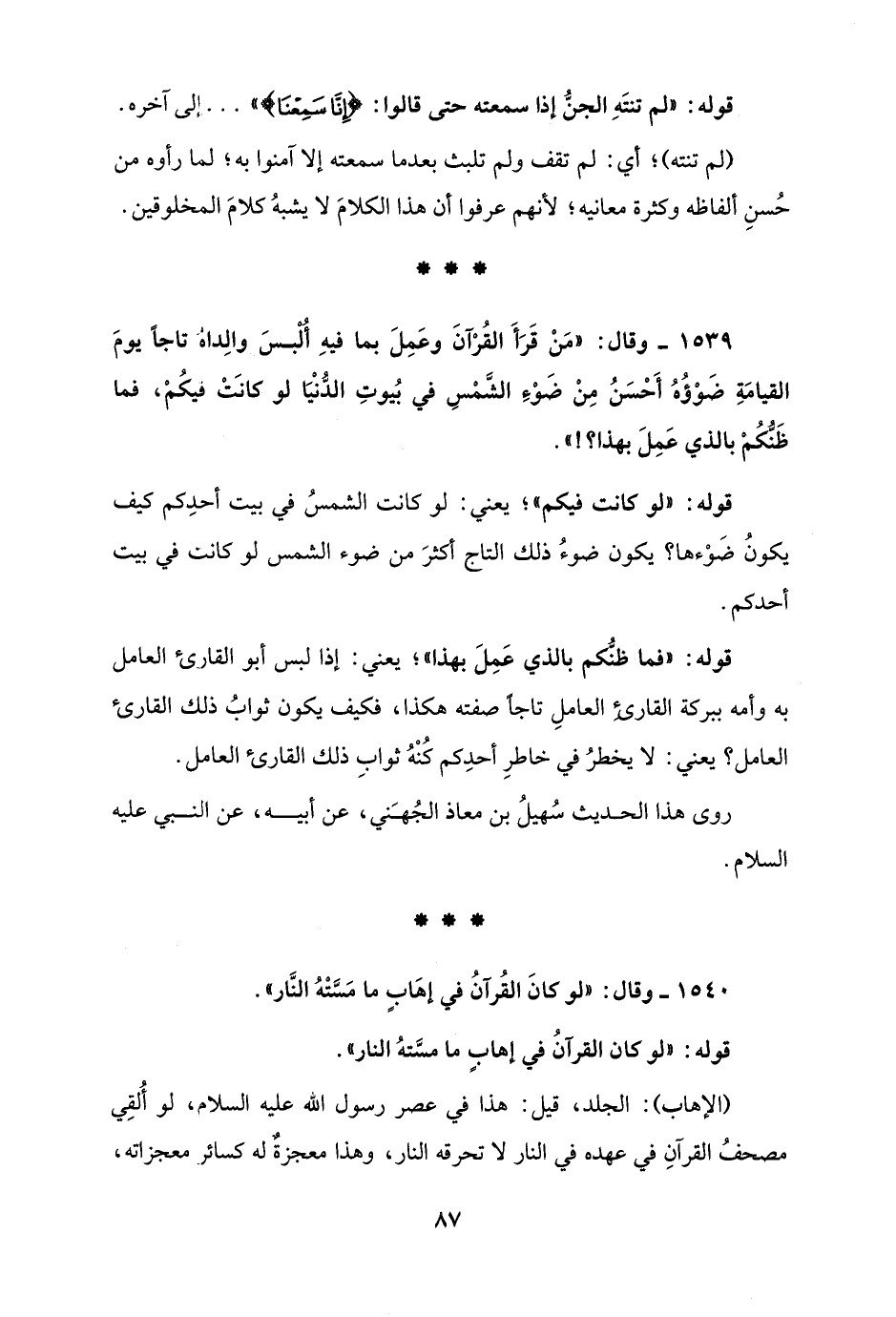 1540 - وقال: "لو كانَ القُرآنُ في إهَابٍ ما مَسَّتْهُ النَّار".