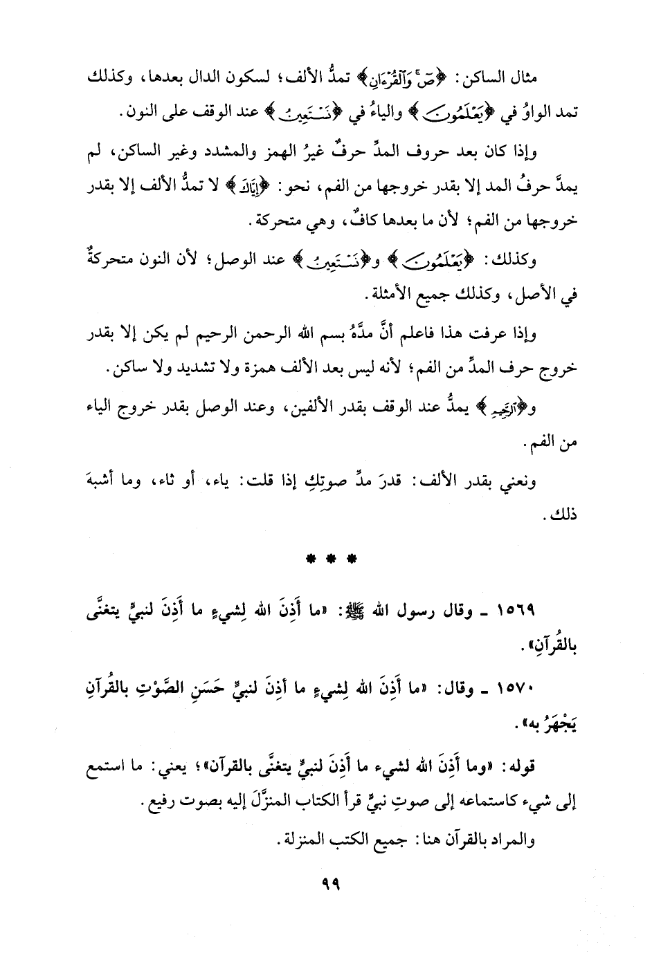 1569 - وقال رسول الله - صلى الله عليه وسلم -: "ما أَذِنَ الله لِشيءٍ ما أَذِنَ لنبيٍّ يتغنَّى بالقُرآنِ".