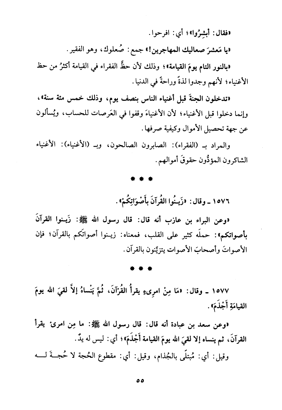 1576 - وقال: "زَينُوا القُرآنَ بأَصْوَاتِكُمْ".