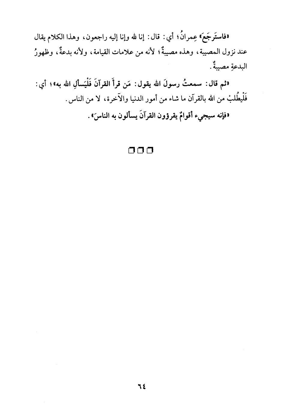 "فاستَرجَعَ" عِمرانُ؛ أي: قال: إنا لله وإنا إليه راجعون، وهذا الكلام يقال عند نزول المصيبة، وهذه مصيبةٌ؛ لأنه من علامات القيامة، ولأنه بدعةٌ، وظهورُ البدعةِ مصيبةٌ.