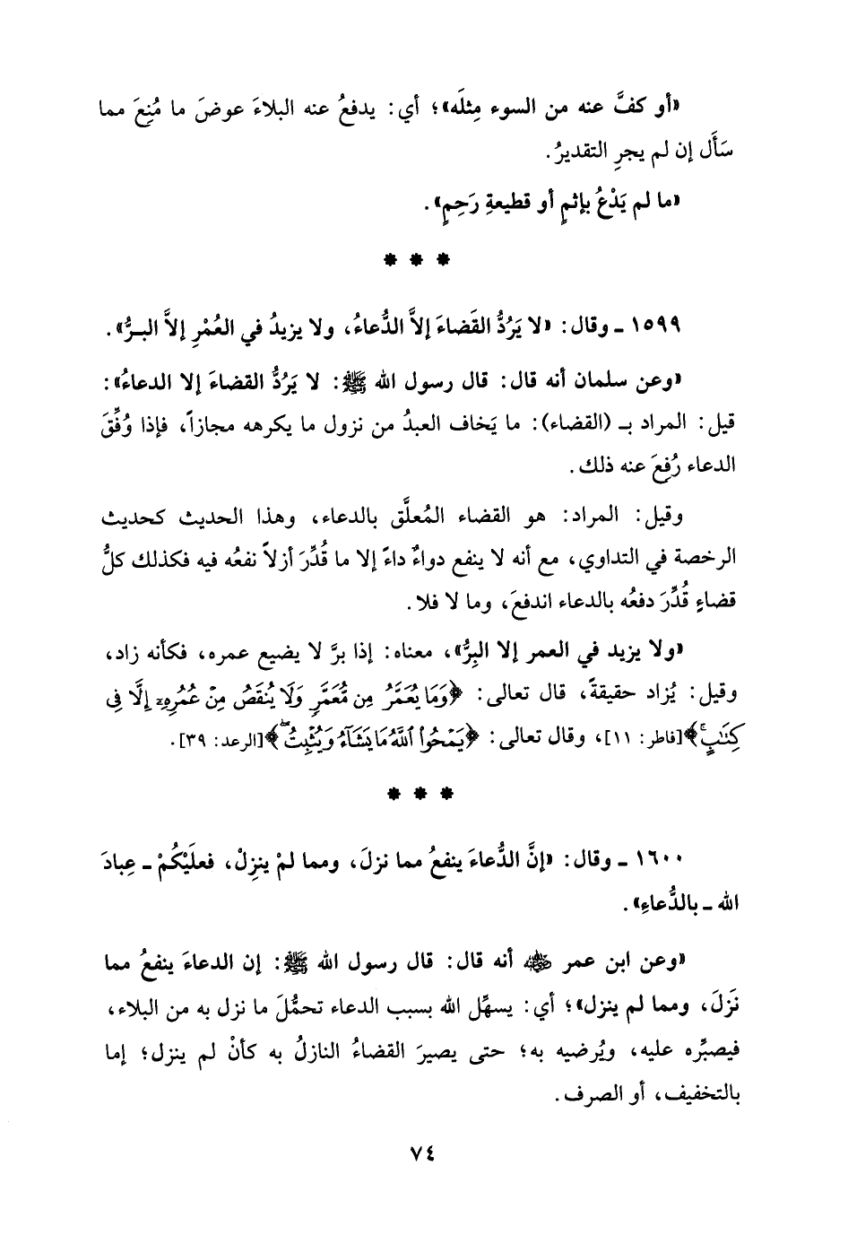 1599 - وقال: "لا يَرُدُّ القَضاءَ إلاَّ الدُّعاءُ، ولا يزيدُ في العُمْرِ إلاَّ البرُّ".