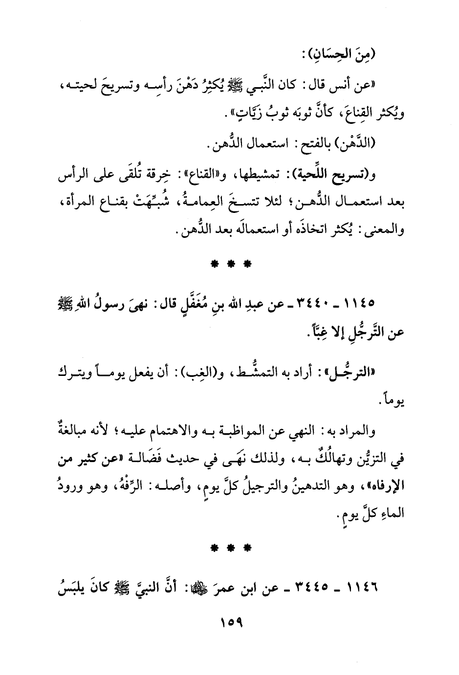 1145 - 3440 - عن عبد الله بن مغفل قال: نهى رسول الله صلى الله عليه وسلم عن الترجل إلا غبا.