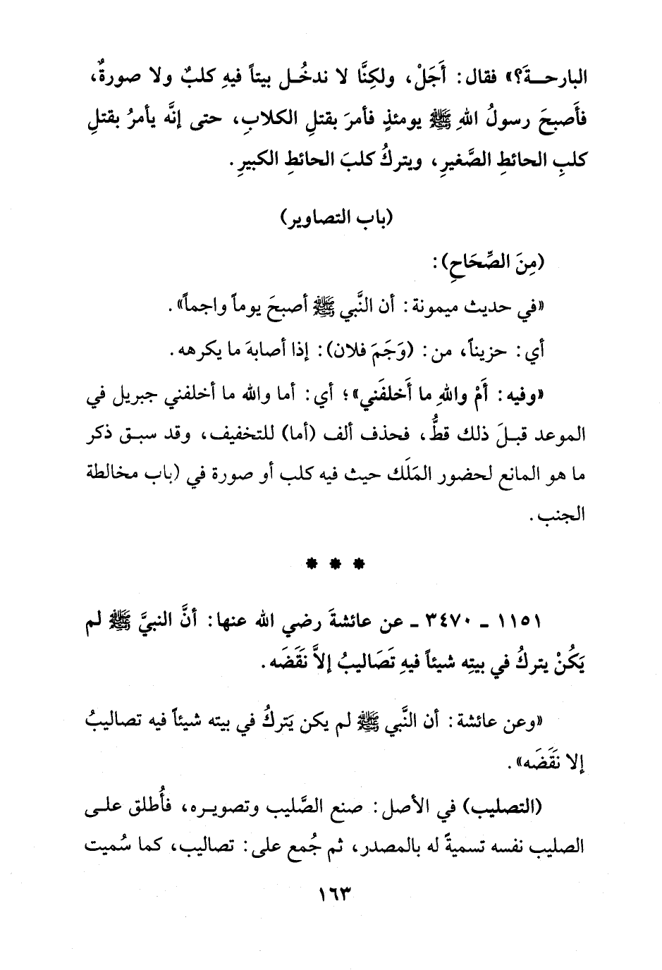 1151 - 3470 - عن عائشة رضي الله عنها: أن النبي صلى الله عليه وسلم لم يكن يترك في بيته شيئا فيه تصاليب إلا نقصه.