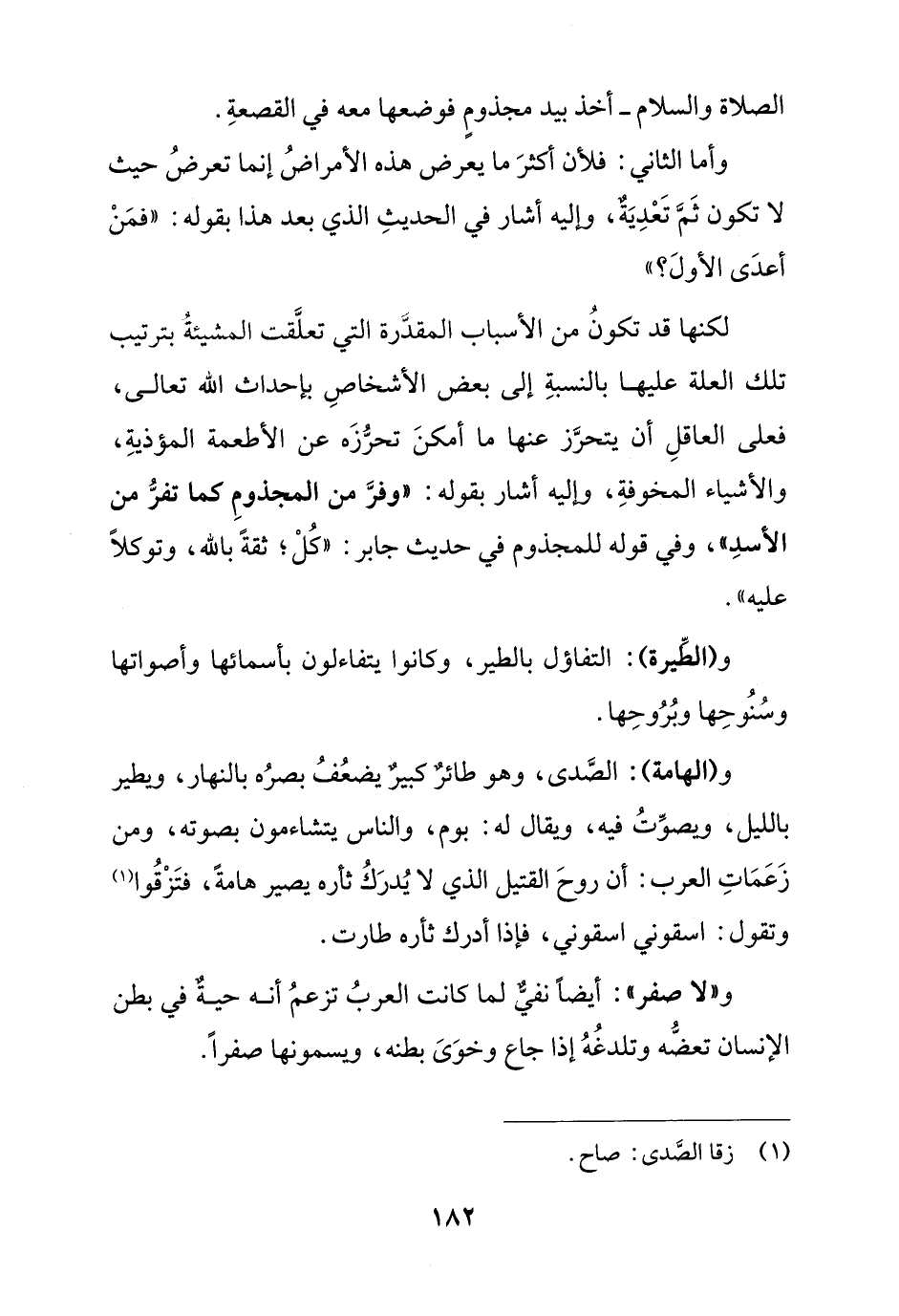 و"لا صفر": أيضا نفي لما كانت العرب تزعم أنه حية في بطن الإنسان تعضه وتلدغه إذا جاع وخوى بطنه, ويسمونها صفرا.