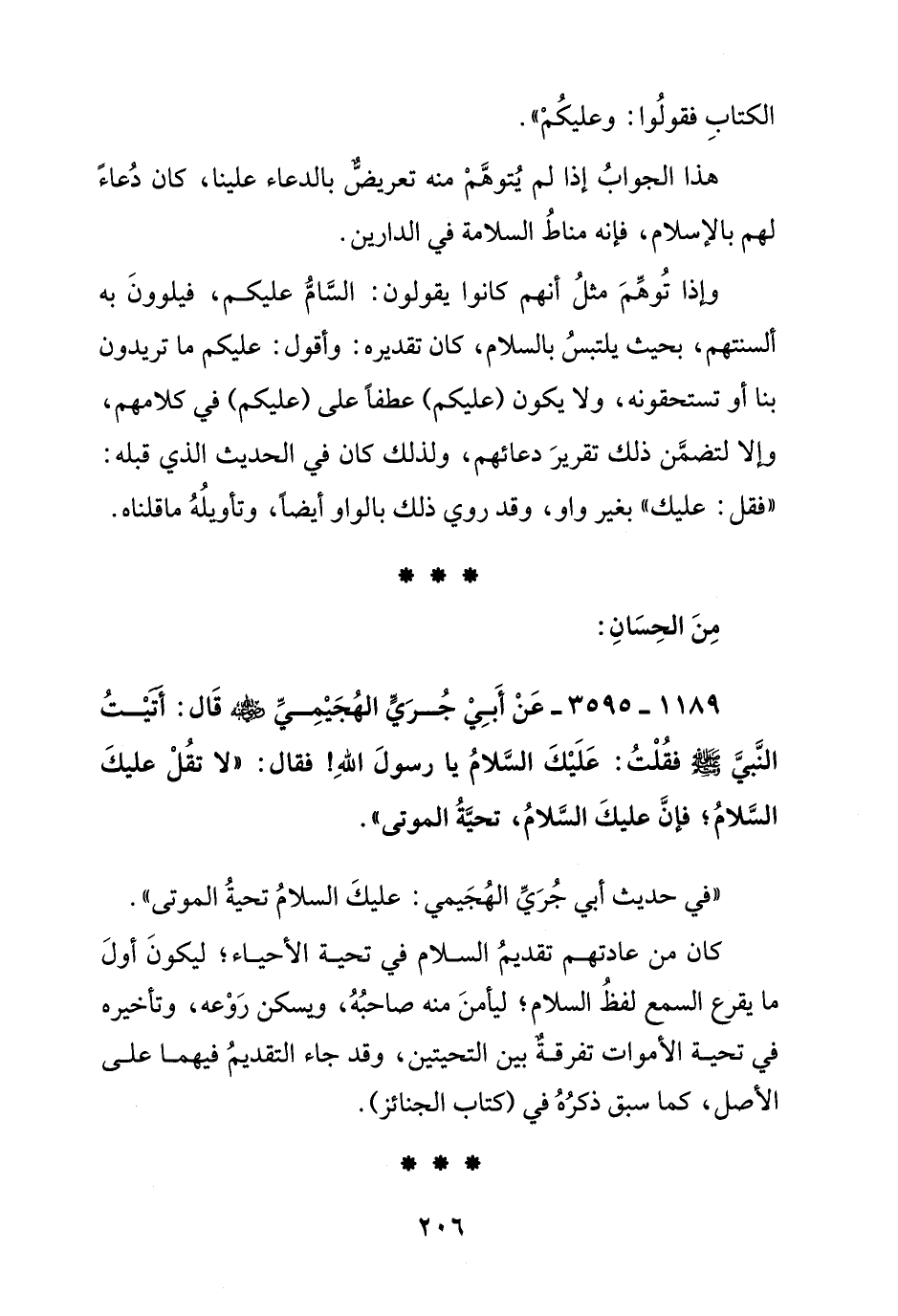 1189 - 3595 - عن أبي جري الهجيمي رضي الله عنه قال: أتيت النبي صلى الله عليه وسلم فقلت: عليك السلام يا رسول الله! فقال: "لا تقل عليك السلام, فإن عليك السلام, تحية الموتى".
