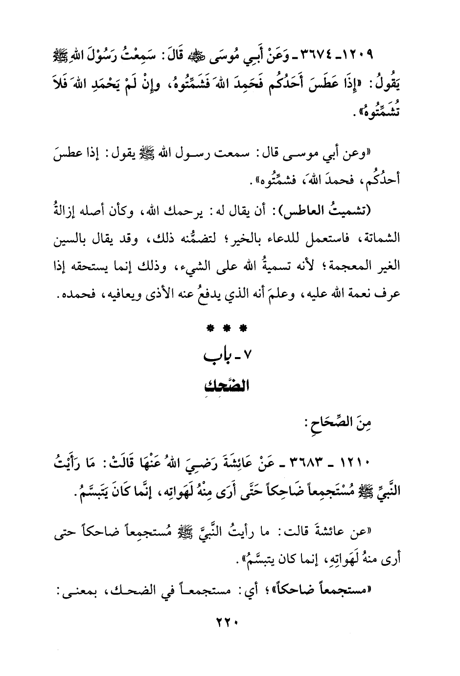1209 - 3674 - وعن أبي موسى رضي الله عنه قال: سمعت رسول الله صلى الله عليه وسلم يقول: "إذا عطس أحدكم فحمد الله فشمتوه, وإن لم يحمد الله فلا تشمتوه"