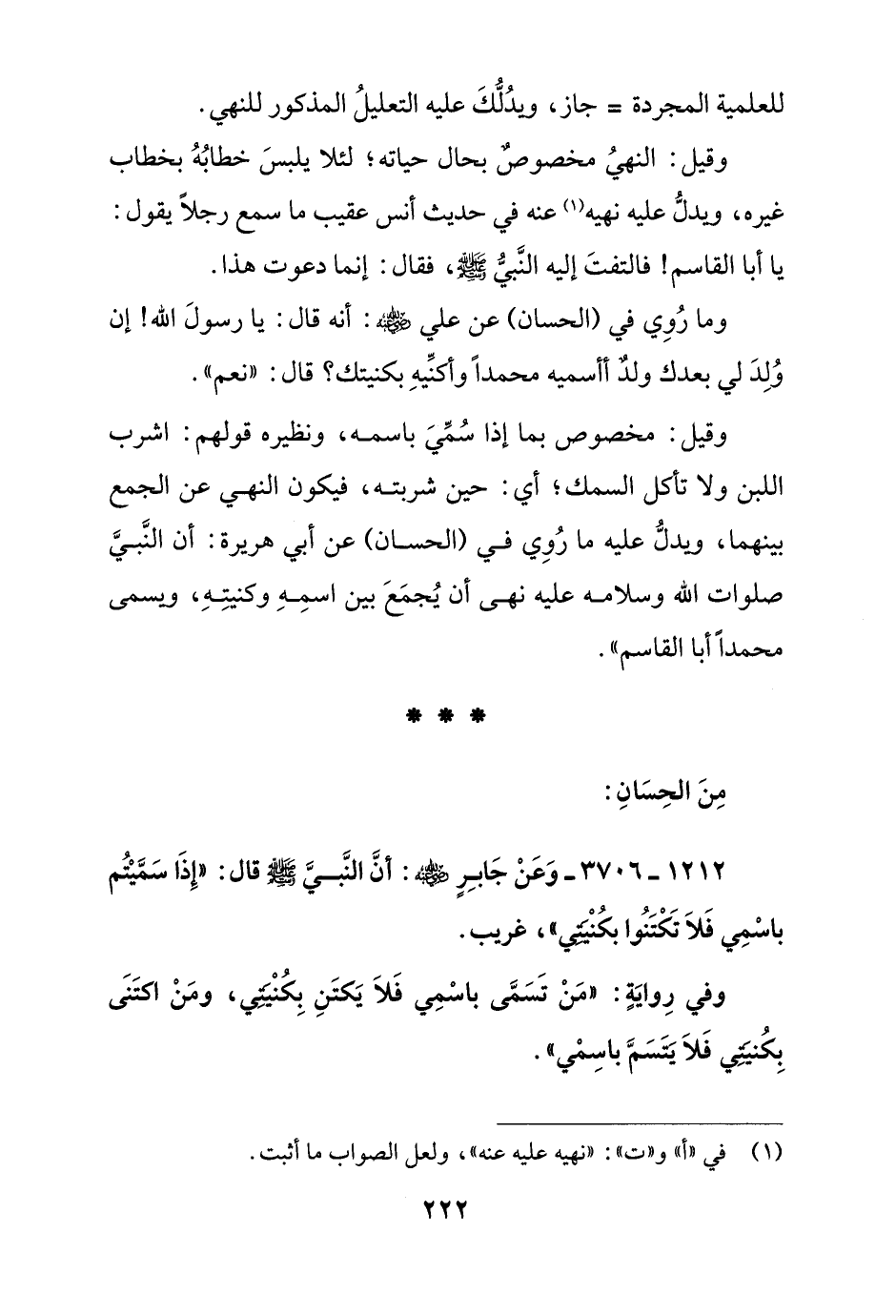 وفي رواية: "من تسمى باسمي فلا يكتن بكنيتي, ومن اكتنى بكنيتي فلا يتسم باسمي"