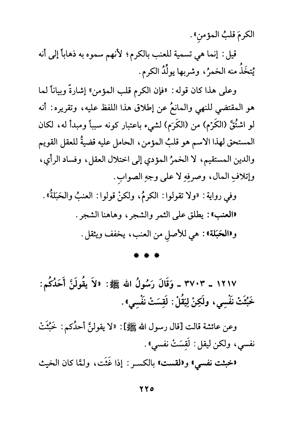1217 - 3703 - وقال رسول الله صلى الله عليه وسلم: "لا يقولن أحدكم: خبثت نفسي, ولكن ليقل: لقست نفسي"