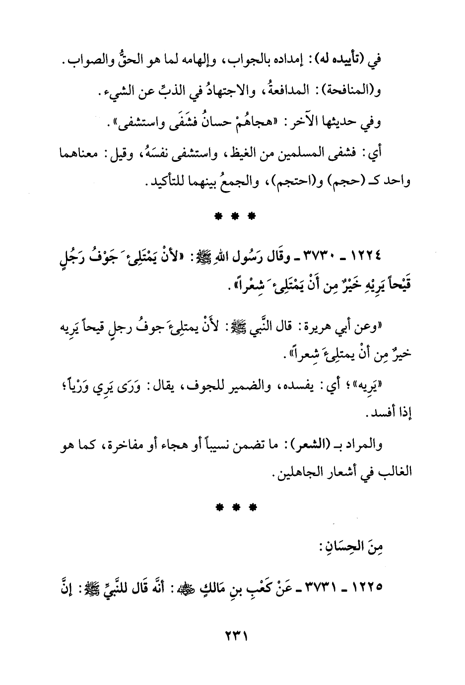 1224 – 3730 – وقال رسول الله صلى الله عليه وسلم: "لأن يمتلئ جوف رجل قيحا يريه خير من أن يمتلئ شعرا"