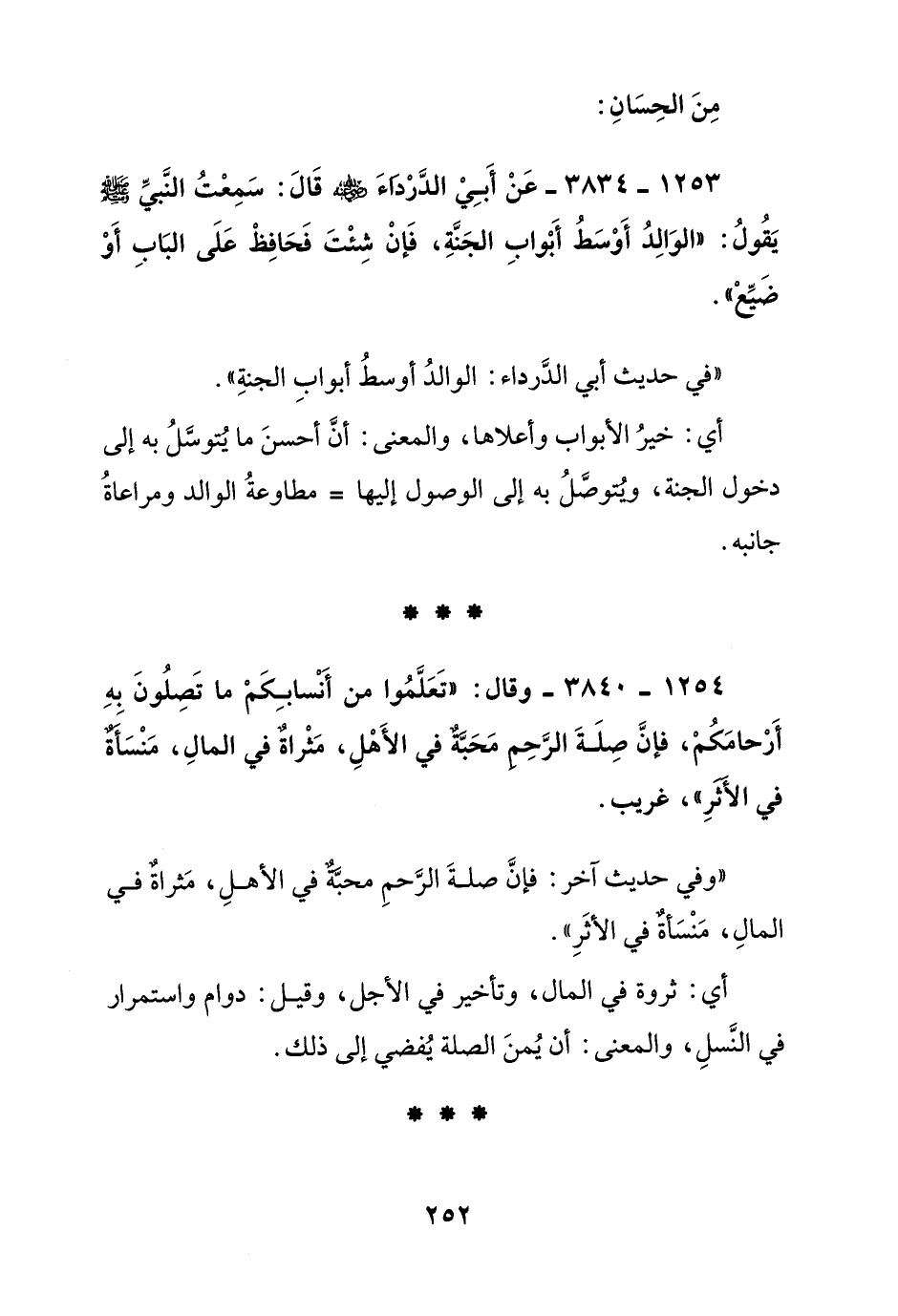 1253 - 3834 - عن أبي الدرداء رضي الله عنه قال: سمعت النبي صلى الله عليه وسلم يقول: الوالد أوسط أبواب الجنة, فإن شئت فحافظ على الباب أو ضيع"